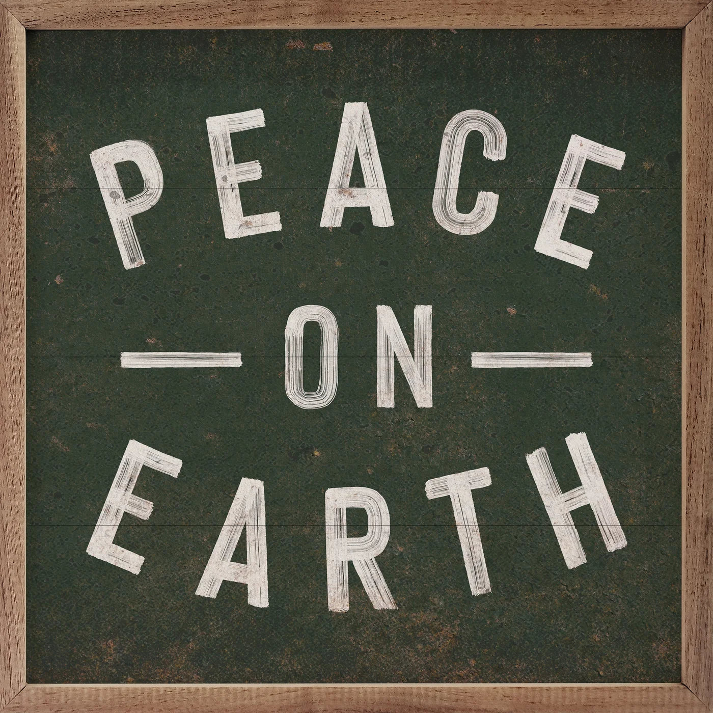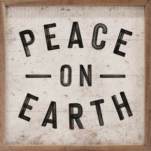 This vintage style wood print, featuring a walnut wood frame with the words "Peace On Earth" whimsically printed on a white or green background in a white or green print, is sure to provide whimsy and farmhouse charm to any home this holiday season.