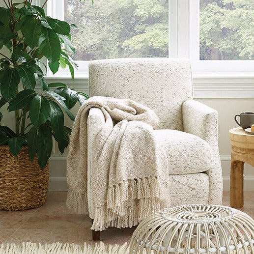 The Pine Cone Hill Boucle throw is expertly crafted with machine washable performance yarns to deliver a comfortable and stylish addition to both outdoor and indoor spaces alike, its farmhouse design adds a touch of rustic sophistication to any home.