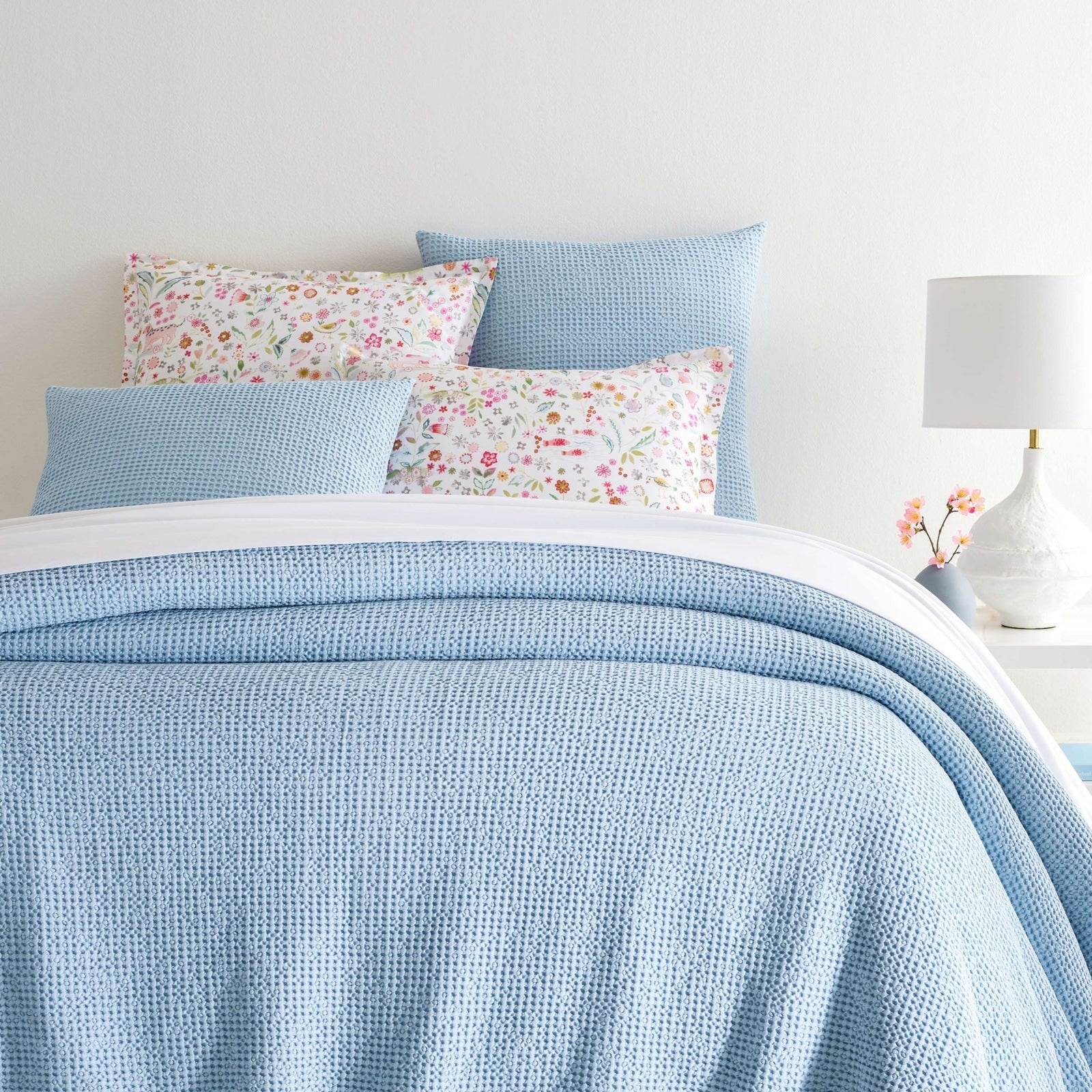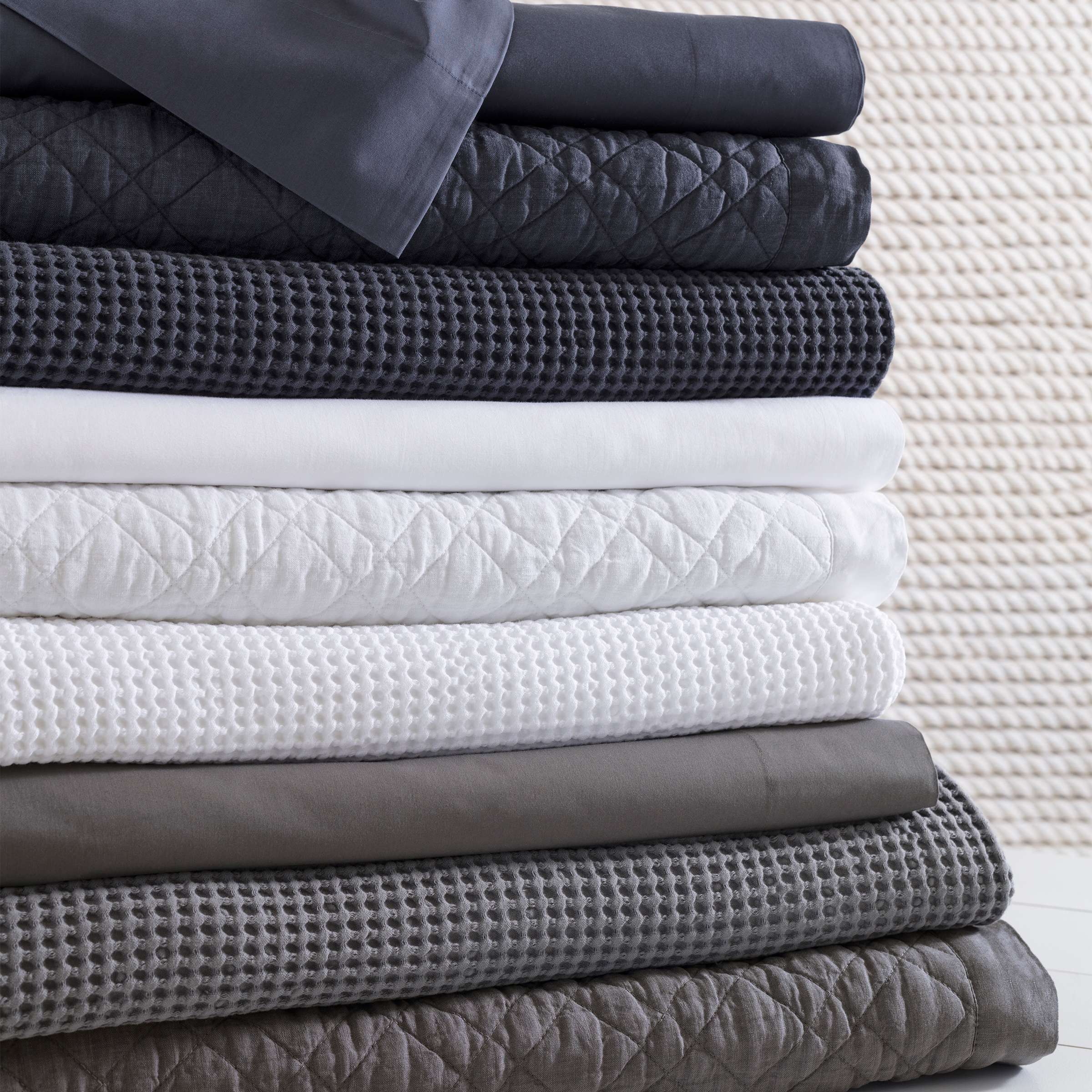 This refreshing crisp matelassé waffle coverlet weave has a soft look, texture and hand feel, expertly woven in Portugal by weavers renowned for their artistry and expertise, it is generously sized, tailored and stonewashed to a buttery soft laundered level of comfort.