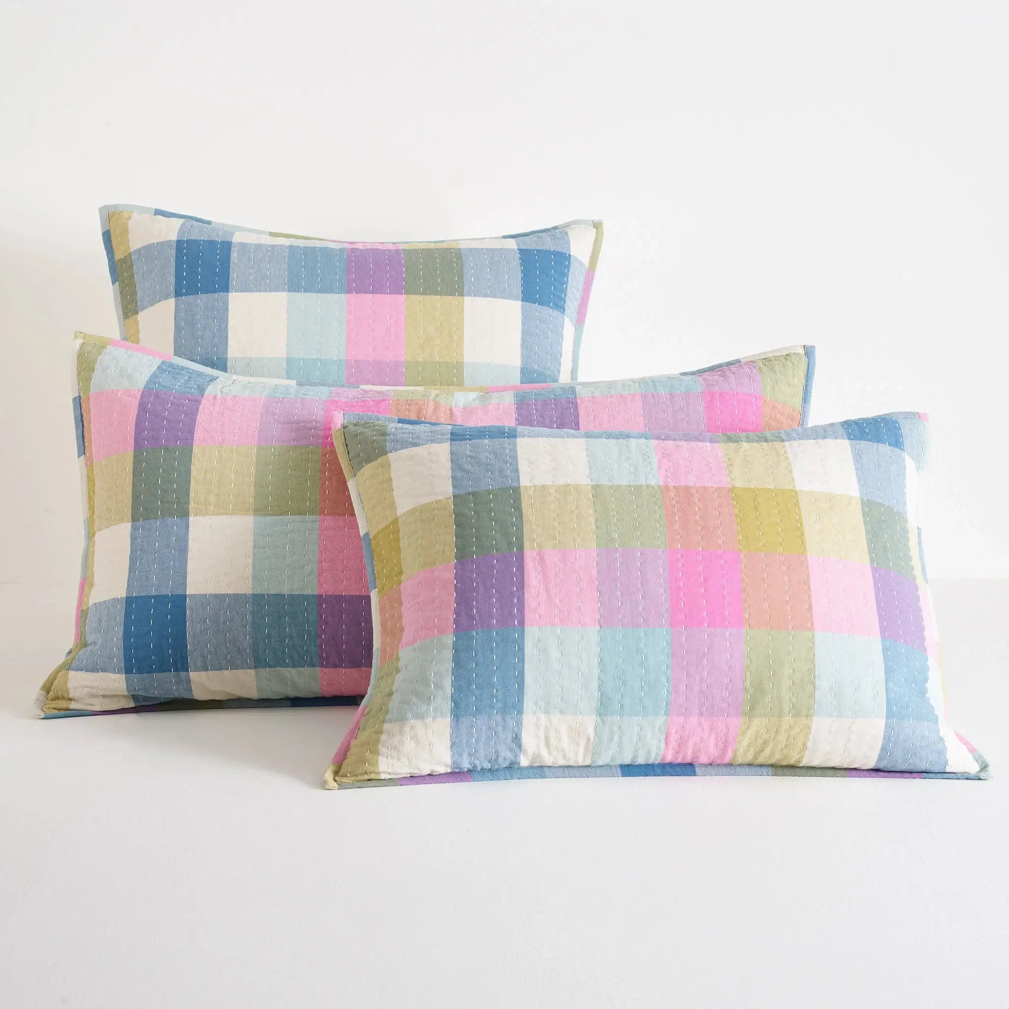 Artisan craftsmanship meets vibrant style in our Charlette Plaid Sham. Made of 100% soft cotton, it features hand-done kantha stitching that is truly special. With an eye-catching chambray weave and self-hem detail, this lightweight sham is the ultimate cozy (and colorful) upgrade. Pair with the matching coverlet to liven up your space.