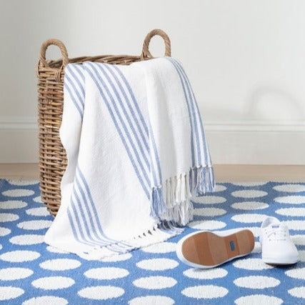 Reminiscent of vintage striped supply sacks, this woven cotton throw is sure to add a bit of cozy European flair to your bedroom or living room.