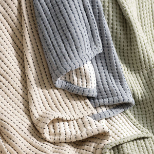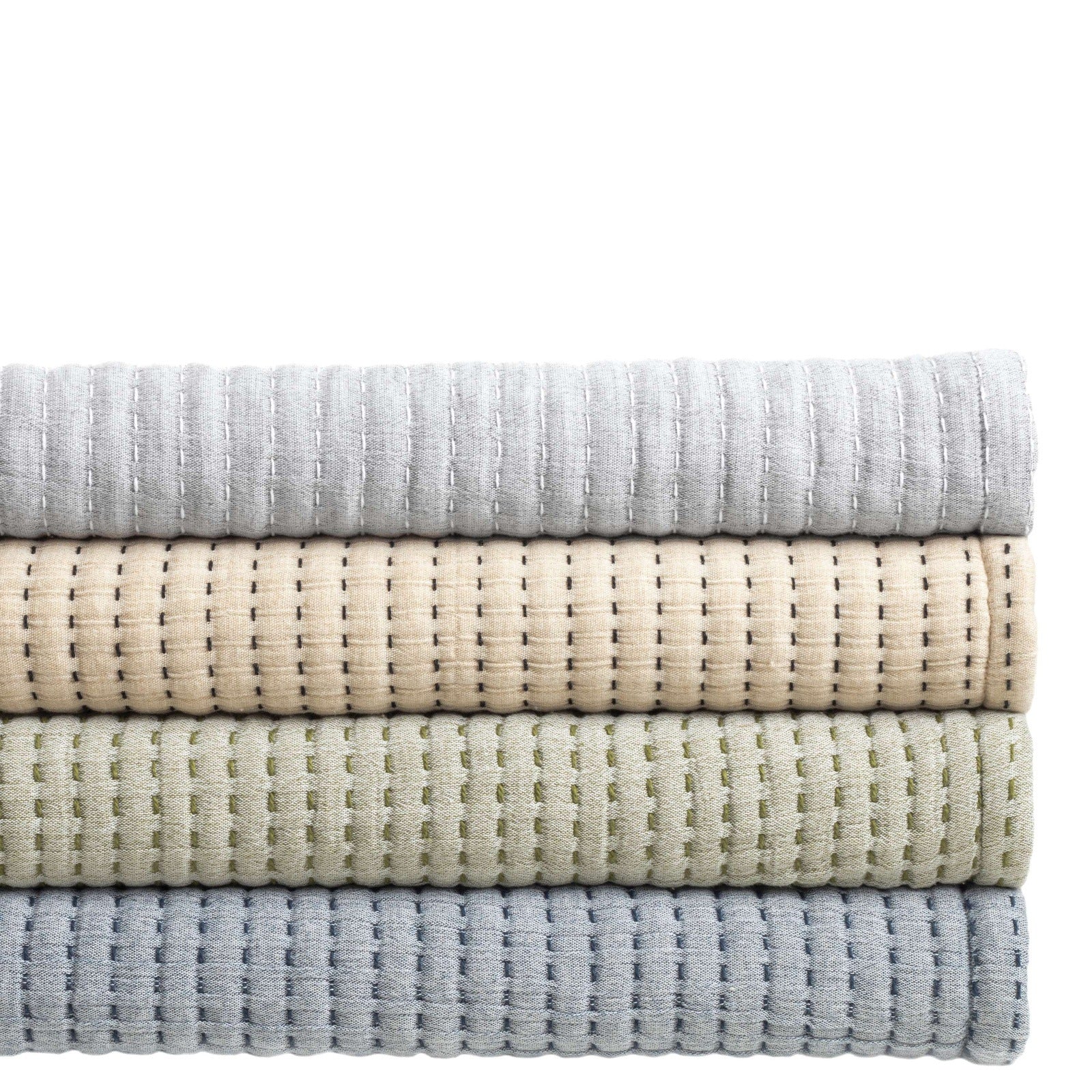 Precisely crafted with a pick stitch that accentuates yarn dyed cotton jacquard giving you a reversible matelassé coverlet with a double layer, delivering a lightweight warmth, a soft hand and reverses to natural.