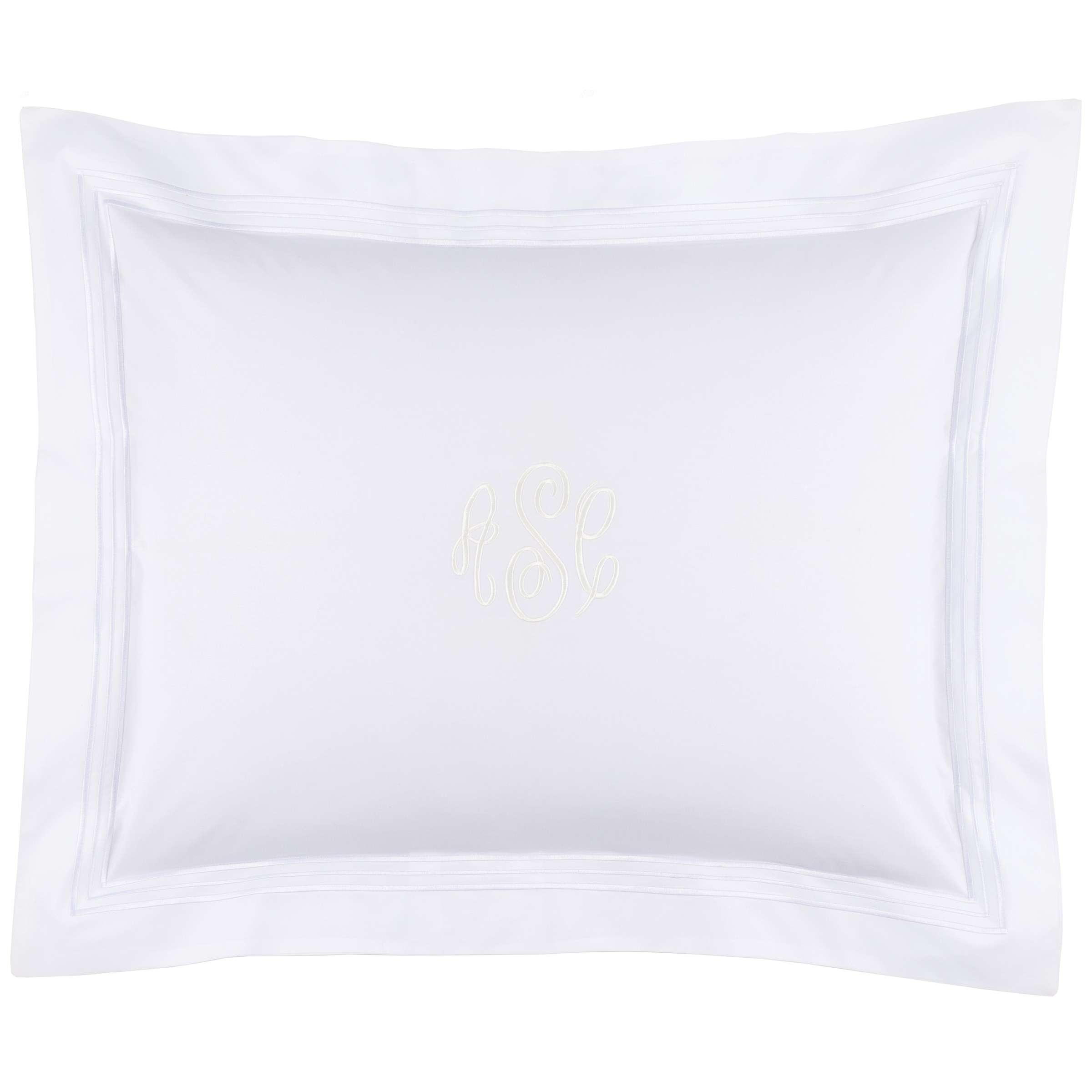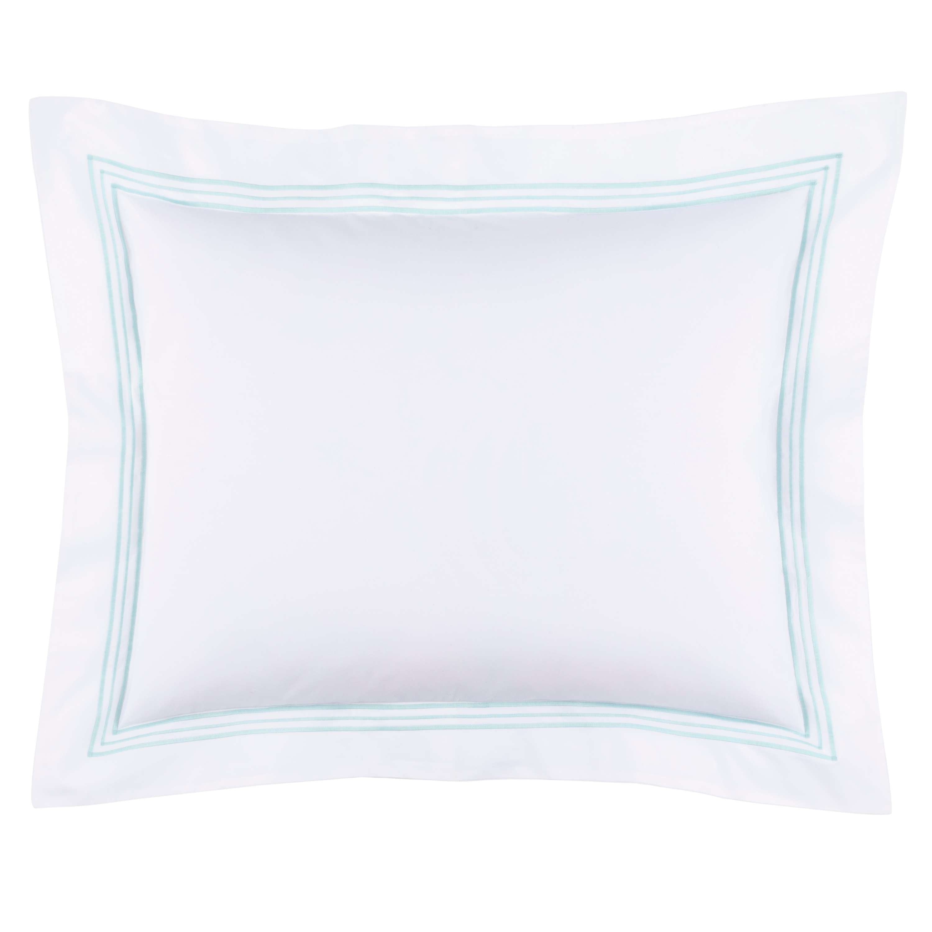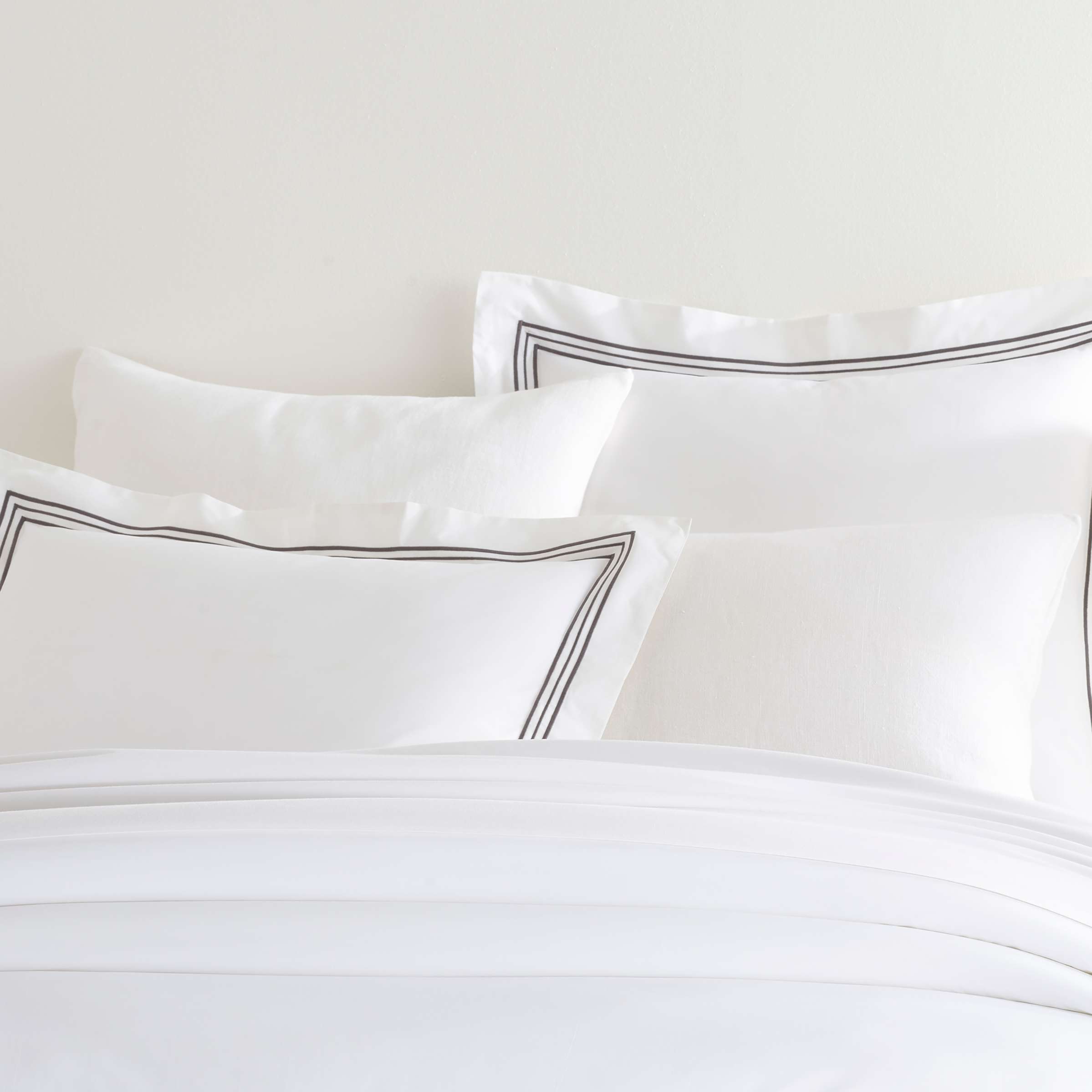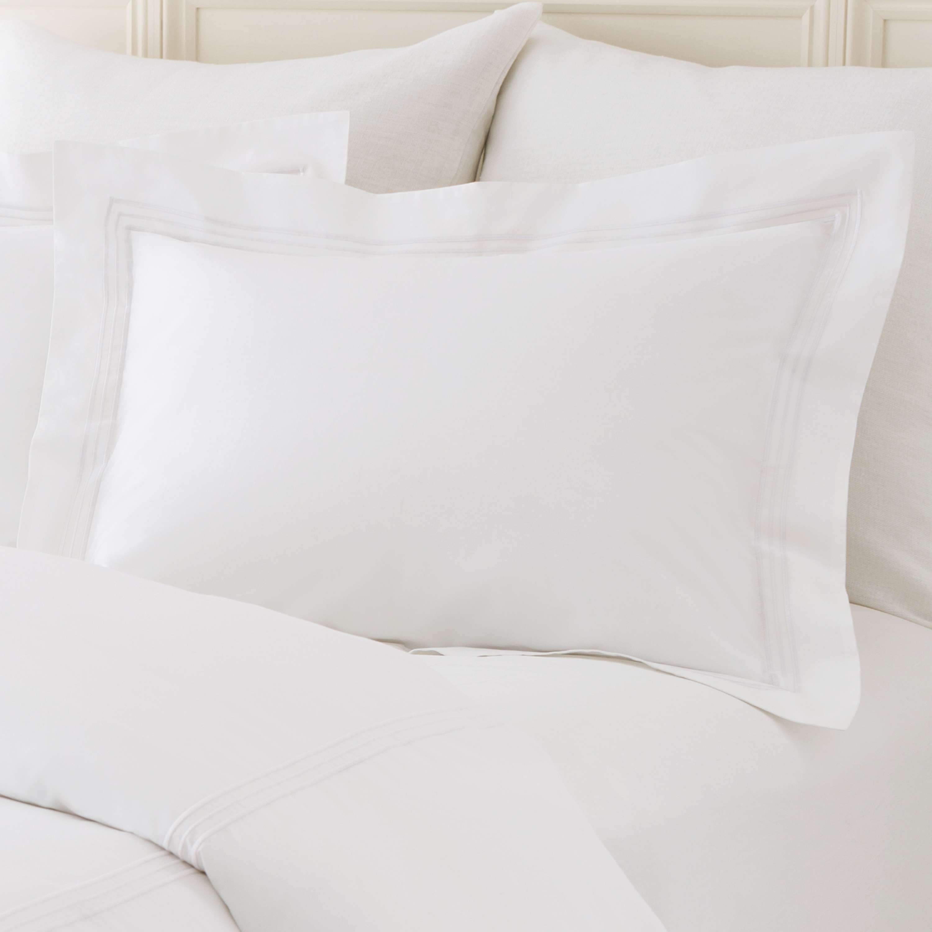 A simple, three-lined embroidery adds a touch of refinement to this classic white, 400 thread count cotton sham, perfect for adding a touch of sophistication to your modern farmhouse bedroom.
