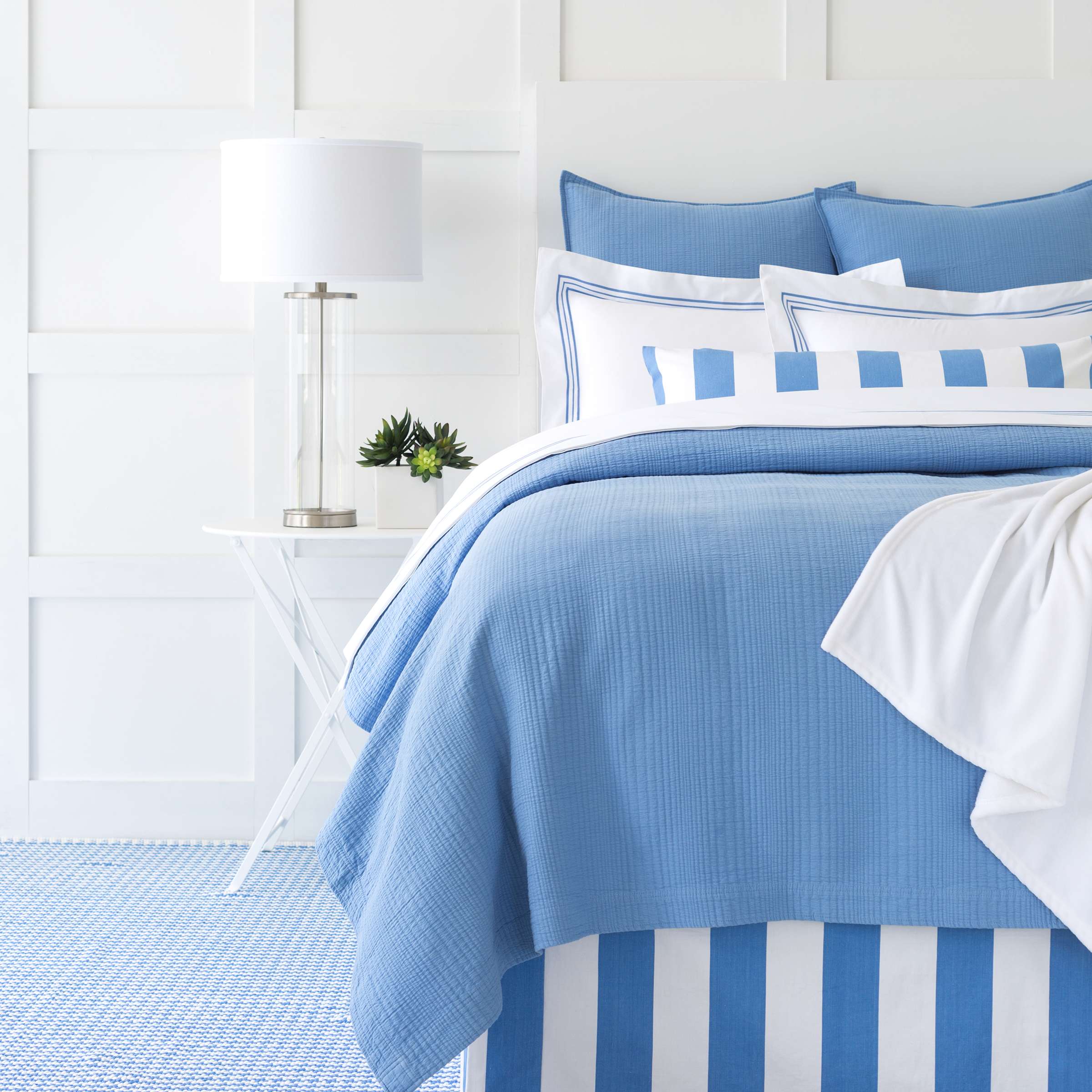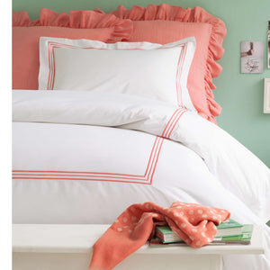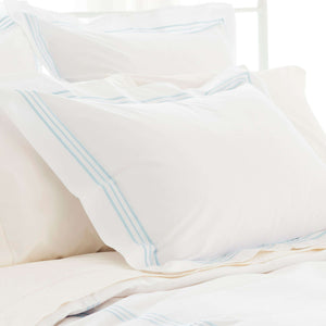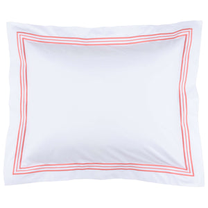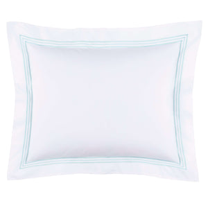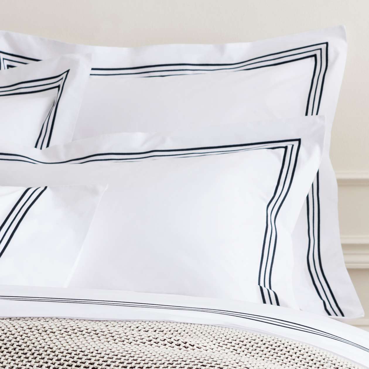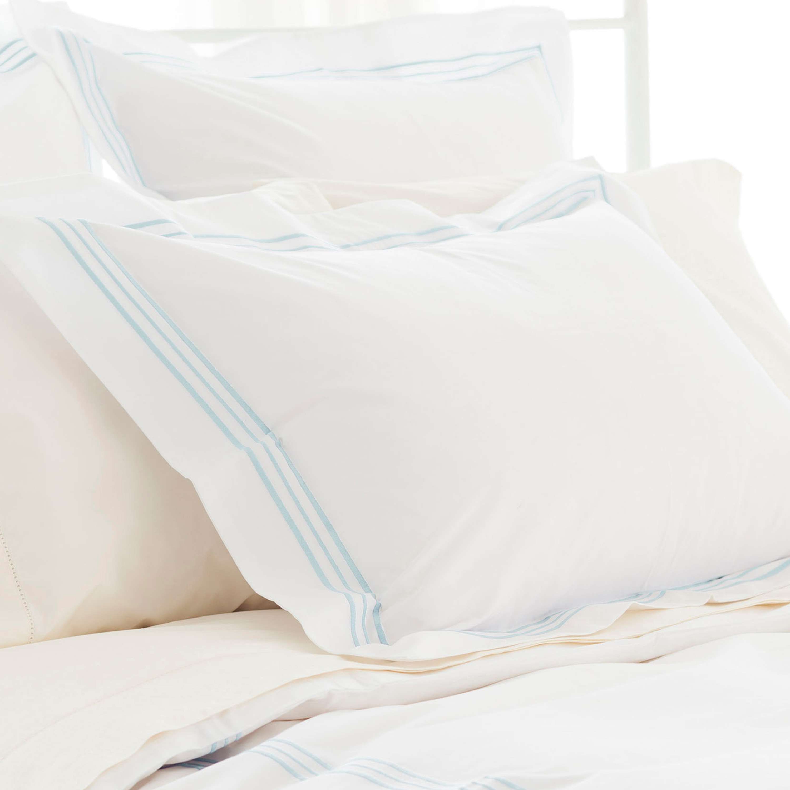 A simple, three-lined embroidery adds a touch of refinement to this classic white, 400 thread count cotton sham, perfect for adding a touch of sophistication to your modern farmhouse bedroom.