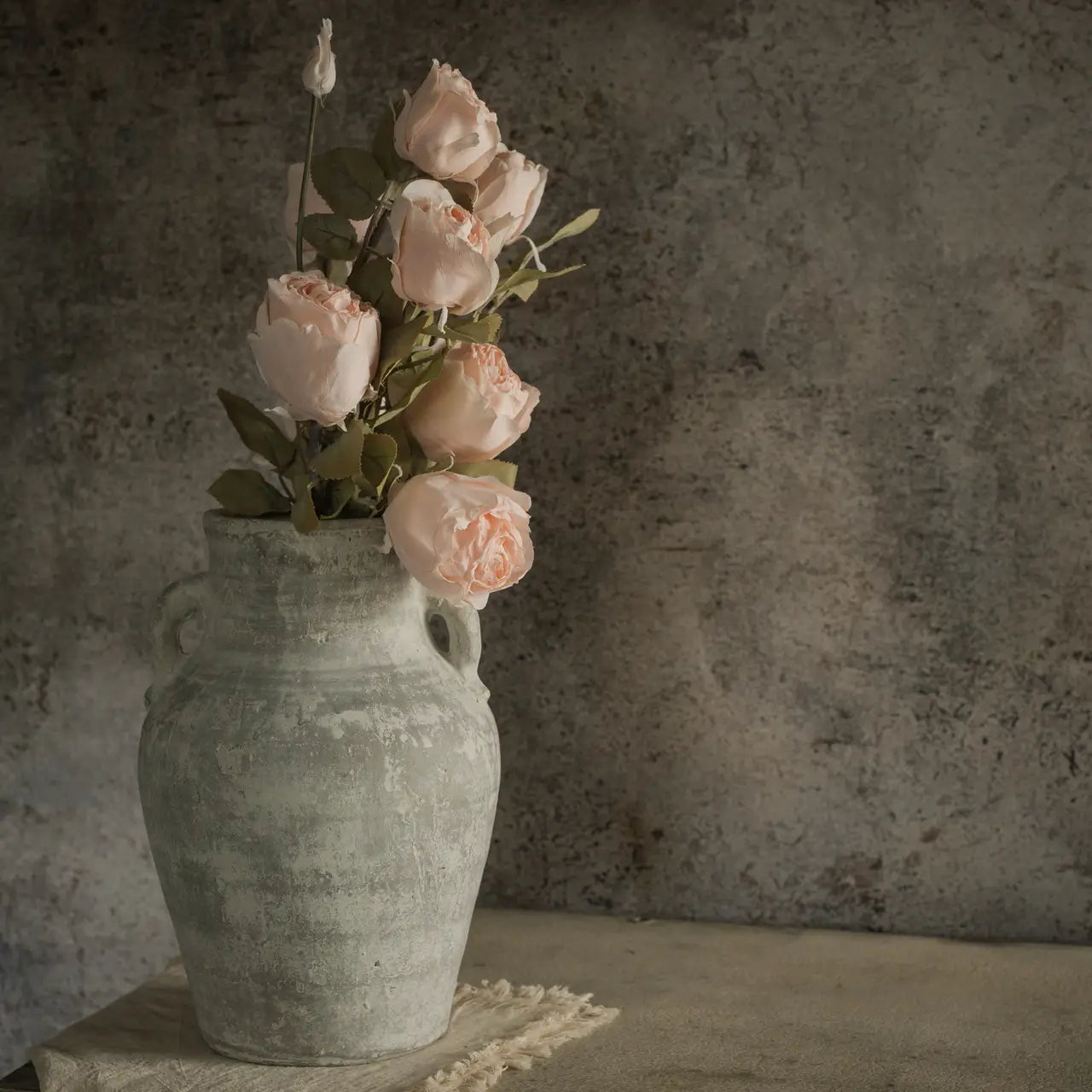 These artificial pink rose stems are perfect for adding texture while brightening up a room and would look beautiful housed in anything from wall baskets to vintage metal urns.