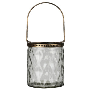 Add a vintage glow to your home with these antiqued brass handled votives, featuring a diamond pressed or ribbed glass pattern, they are as unique as they are beautiful solo or grouped together for soft lighting.