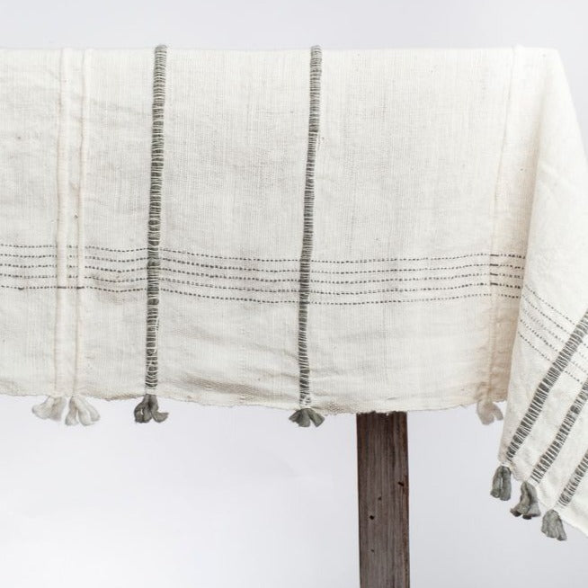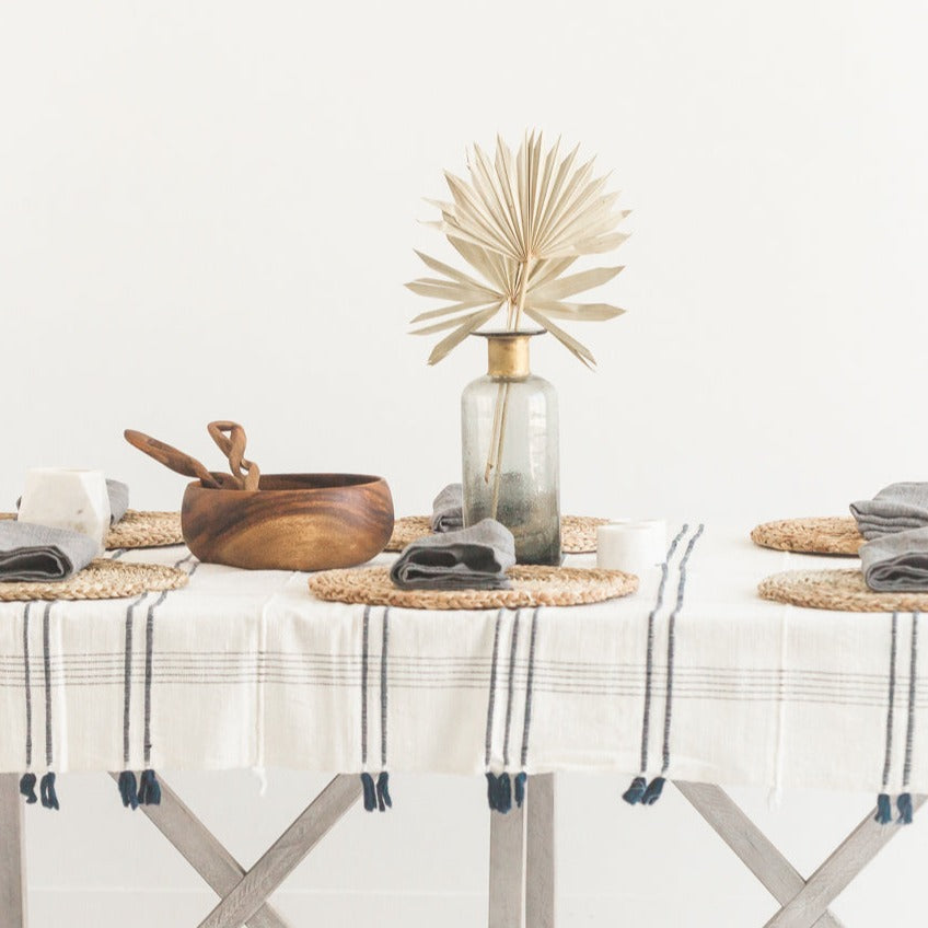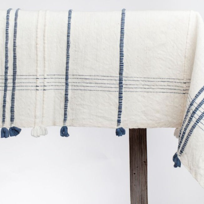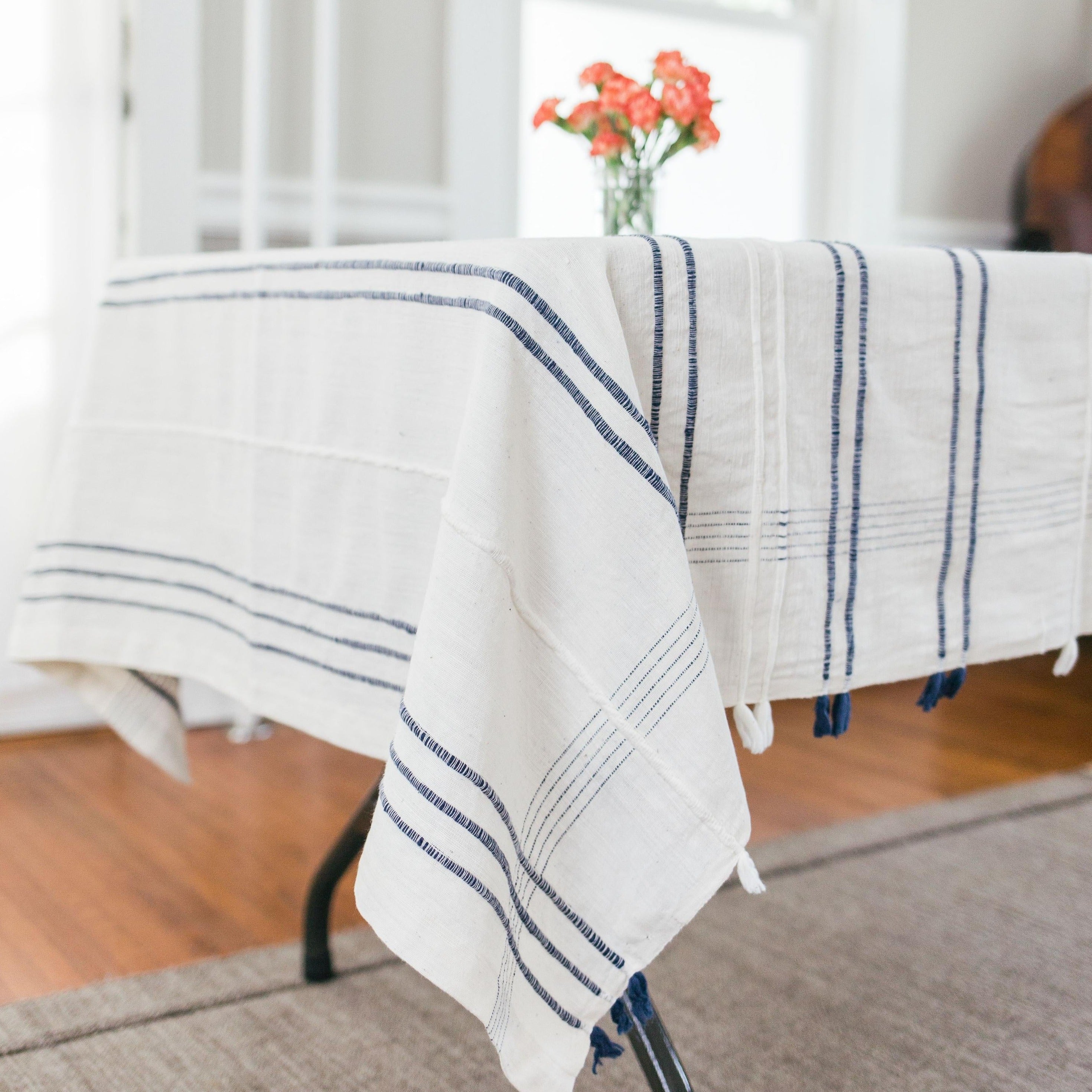 Add a luxurious touch to your tablescape with our Ribbons Cotton Tablecloth! Beautifully versatile for indoor or outdoor use, these pieces are exquisitely handwoven by a small group of talented Ethiopian artisans using handspun cotton and dyed with AZO-free color. The tablecloth also could be used as a lightweight throw or wrap and are made from 100% locally sourced eco-friendly cotton.