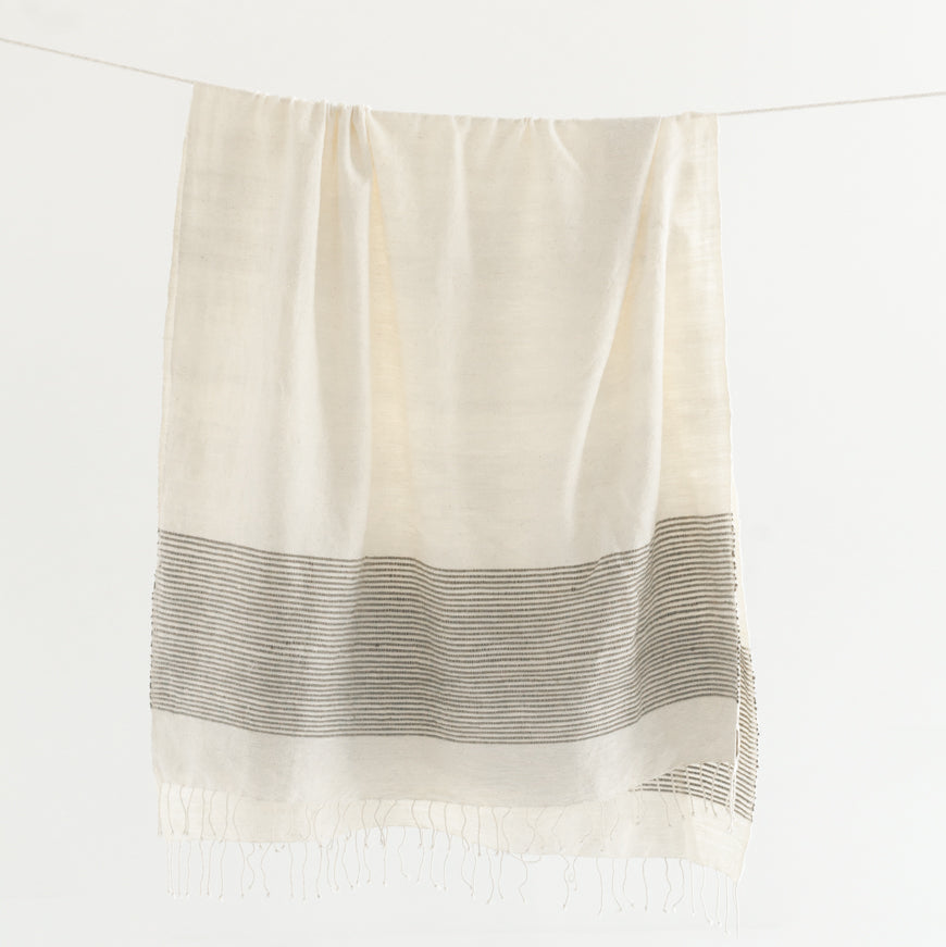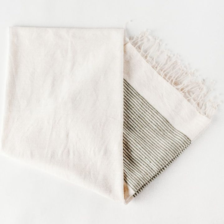 Our beautiful Riviera Bath Towels, hand-woven in Ethiopia using time-honored weaving traditions and AZO-free dyes, feature natural, un-dyed cotton accented with ribbed lines of delicate color, adding beautiful sophistication with uniquely rich texture that will continue to soften and become more absorbent with each wash and dry.