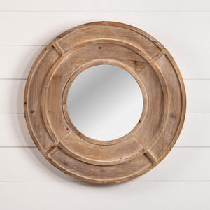 This Round Wood Wall Mirror is the perfect mix of modern and farmhouse style, featuring a natural wood finish in a modern porthole design, this mirror is perfect for adding interest with simplicity to any space.