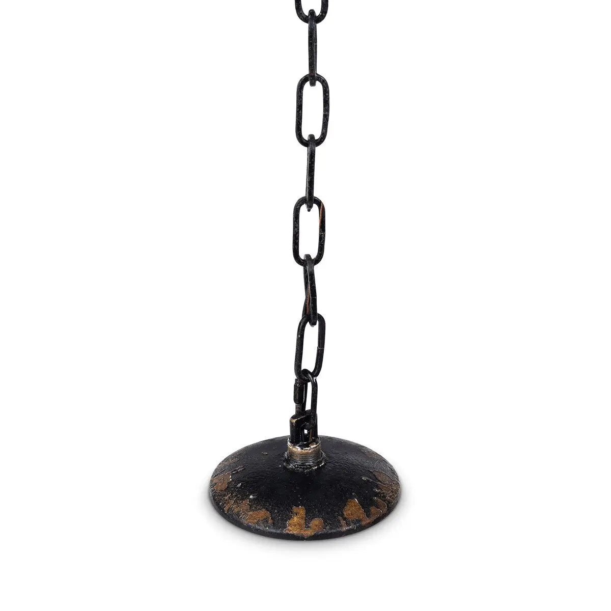 Our Savannah Chandelier will make an elegant statement piece in any farmhouse style dining room with its carved wood center and six aged metal arms with gold accents.