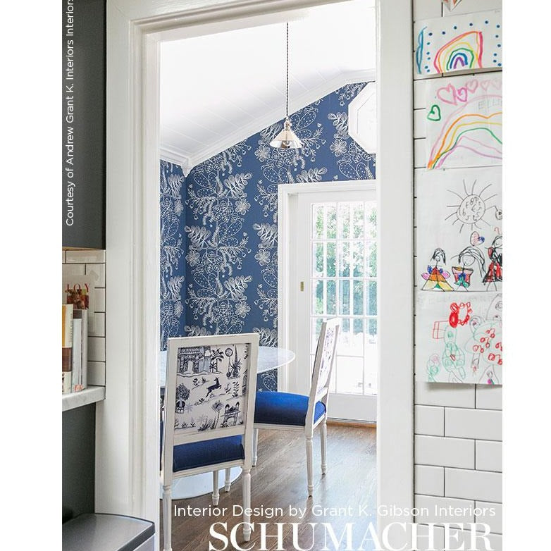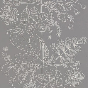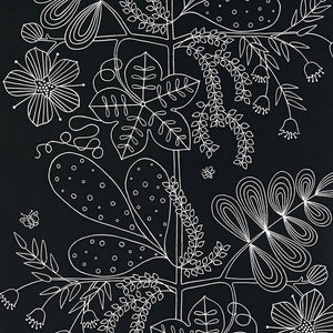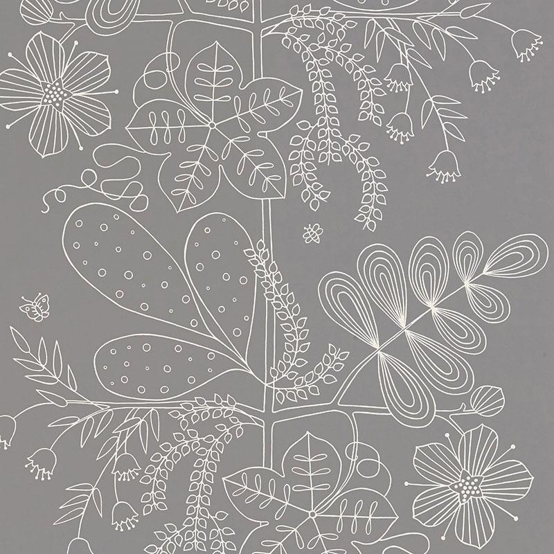 A stylized botanical pattern, Blommen's tendrils, bluebells, and palm-style fronds recall midcentury Scandinavian designs.