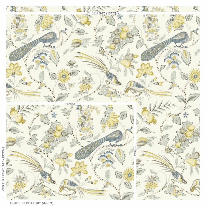 A lush, lively interpretation of a classic French design, with a captivating allover pattern of plumes, blossoms and vines.