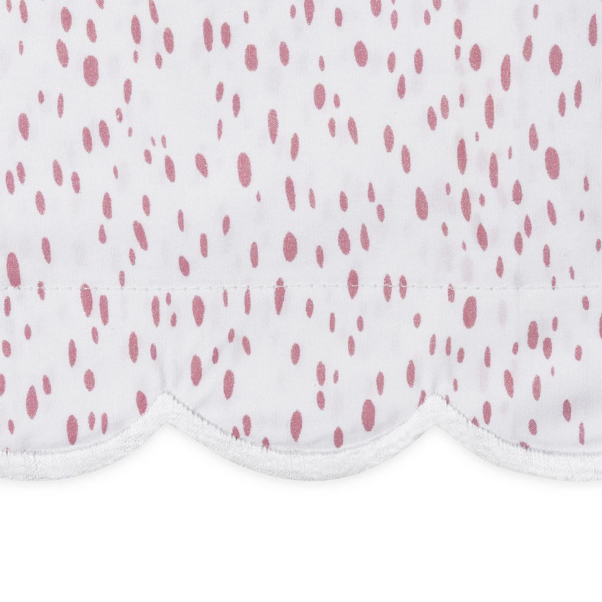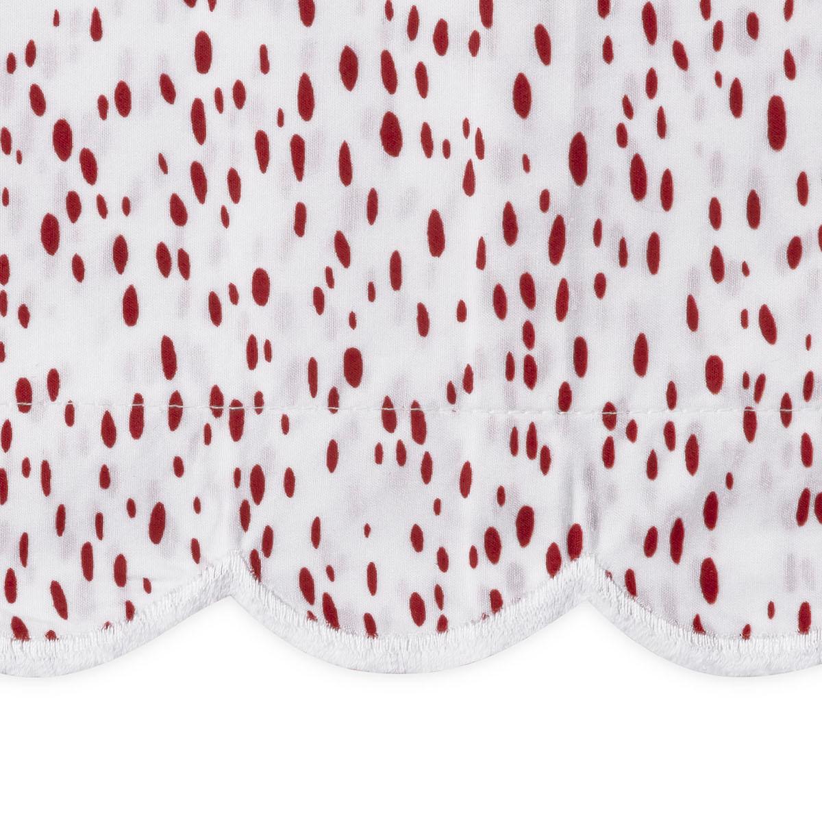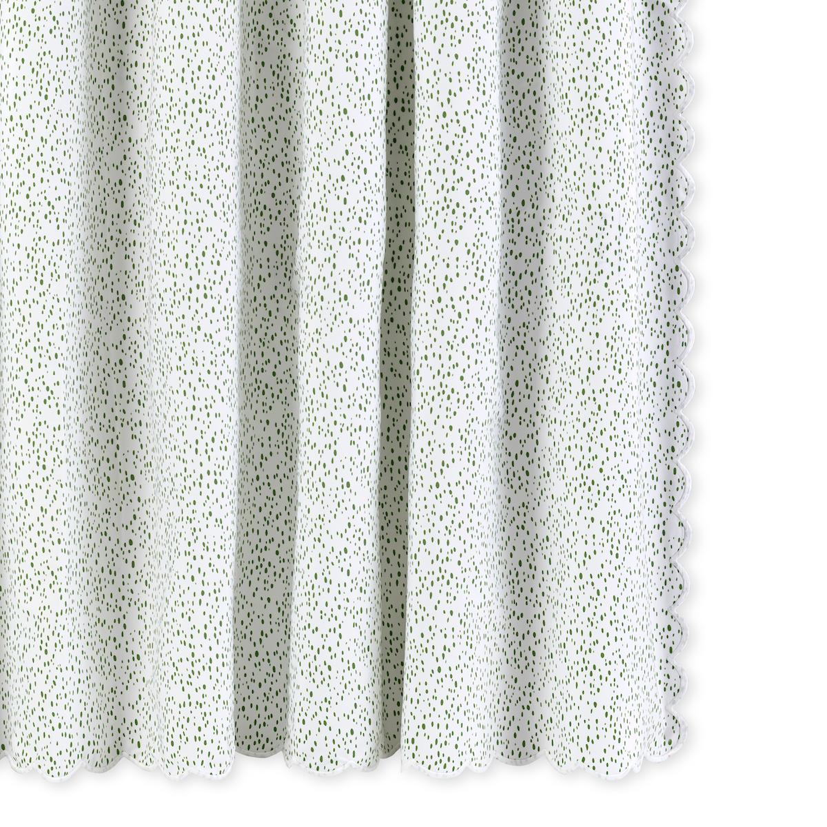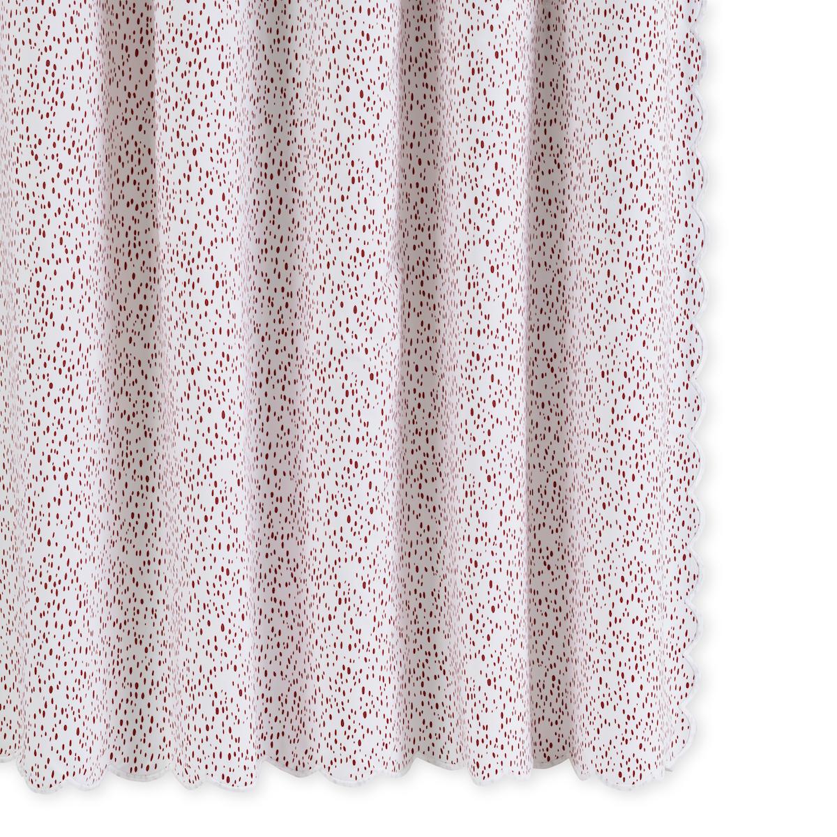 Chic and charming Celine features the painterly dots of Schumacher's classic "Duma" and reimagined for the bath in five graphic colors that stand out against the white background of Matouk’s 500 thread count Luca Egyptian cotton percale. This beautiful shower curtain is finished with a perfect embroidered scalloped edge, making our Celine shower curtain beautifully versatile for any bath.