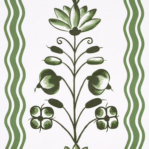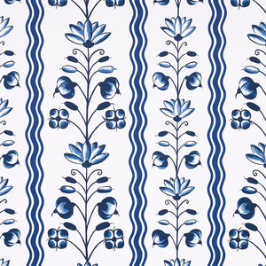 A charming combination of stylized flowers and curvy multi-width stripes, Delft Waves is a useful mid-scale pattern created by Marie-Anne Oudejans. Inspired by Dutch ceramics, this lovely wallpaper design has a lovely hand-painted look and is perfectly suited for any room.