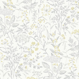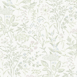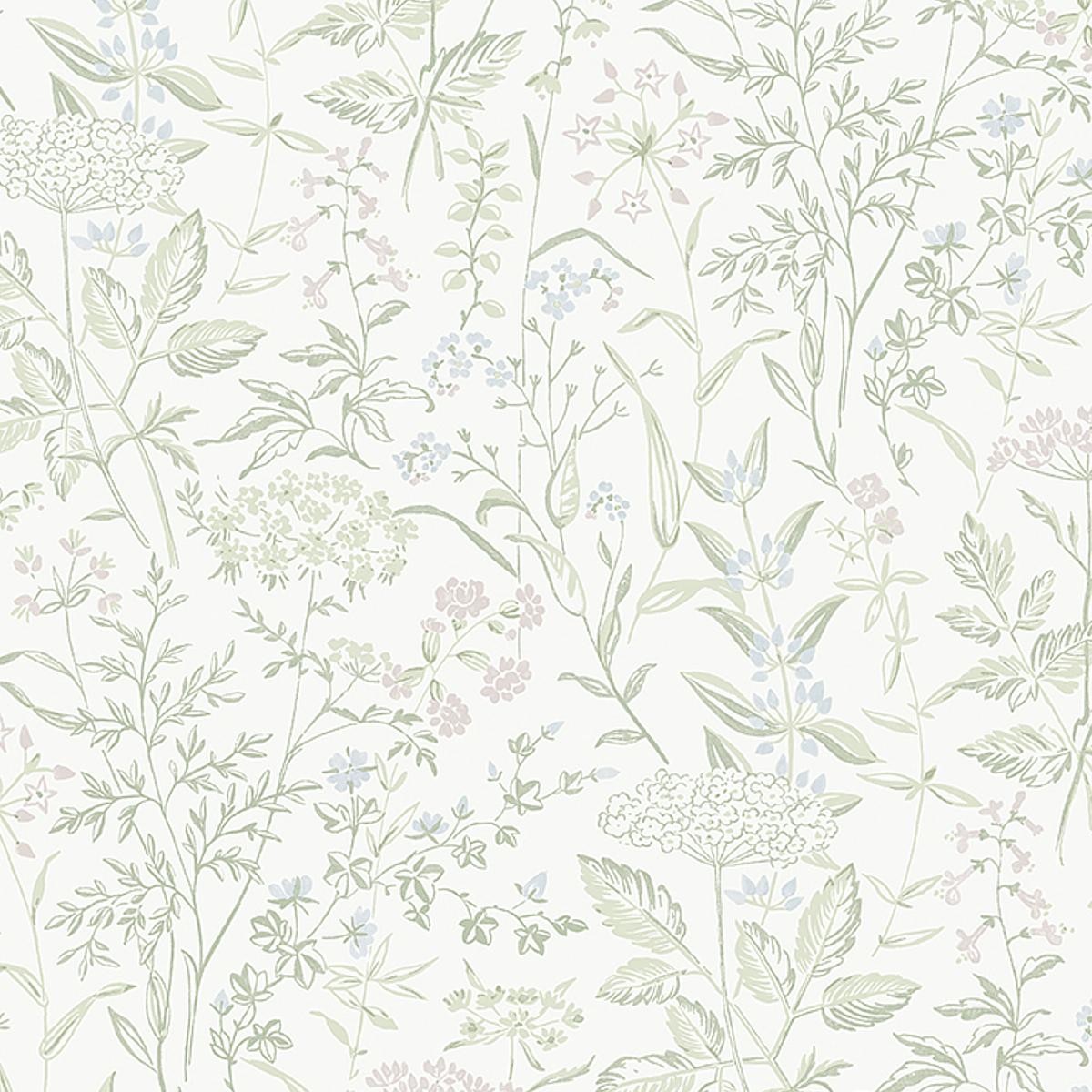 Delicate Dance is a versatile wallpaper that looks lovely on a living room or nursery wall. Queen Anne’s lace and other spring wildflowers appear to be delicately dancing in this print by Swedish heritage brand Boråstapeter.