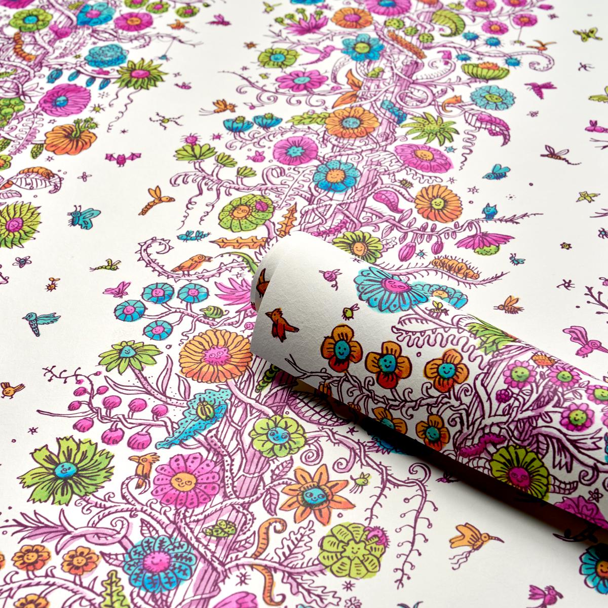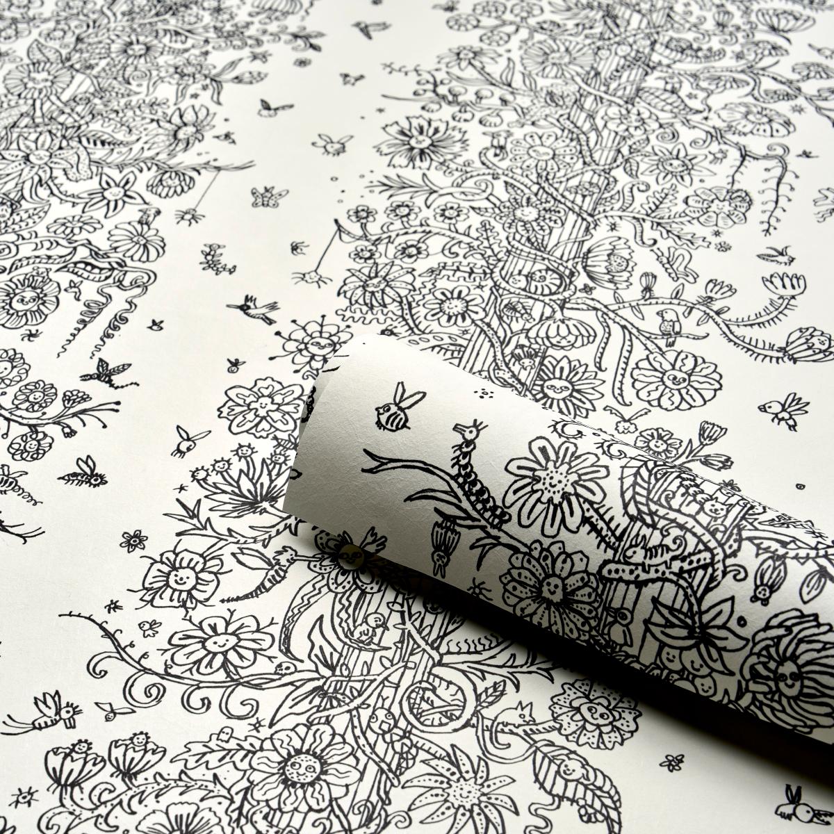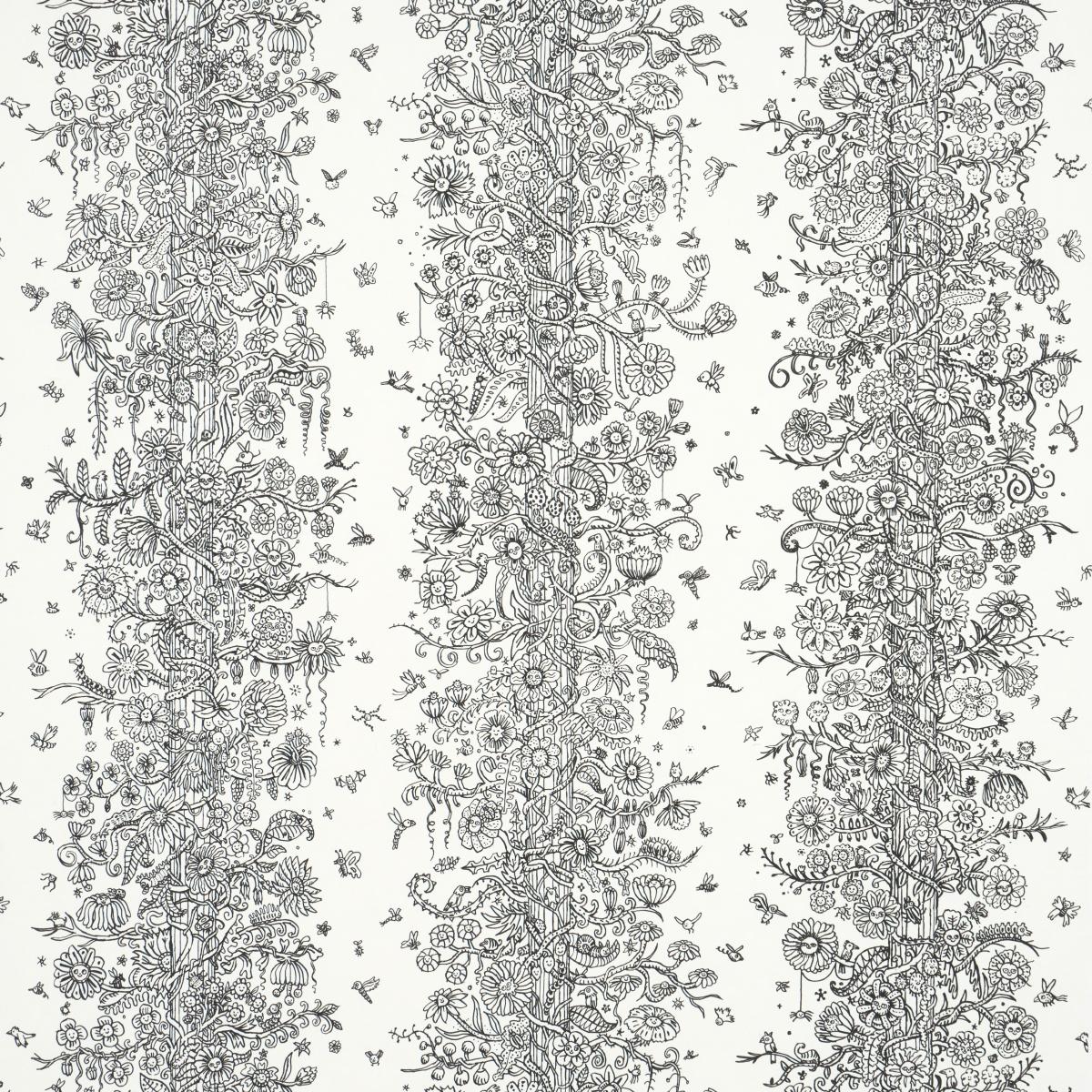 Part of the New Yorker Collection, Edward Steed’s Towers of Flowers is a playful take on a familiar form. Based on newly created original artwork, this wallpaper features a large-scale floral stripe intricately detailed with whimsical flowers and grinning faces. It’s a fun and fantastical conversation piece that invites one to take a closer look.
