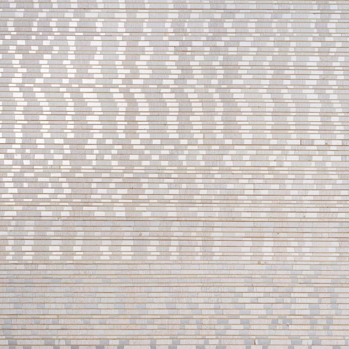 Etti Waterlily is a sophisticated design that derives its extraordinary beauty from natural materials and painstaking craftsmanship. Made of waterlily, grass, and metallic paper, this wallpaper is assembled and painted by hand, creating an irregular mosaic-like composition with subtle tonal variations. Use it on a long expanse of wall for a sublime effect or in a small space, such as behind a bookshelf or on an accent wall, for a luminous, textural surprise.
