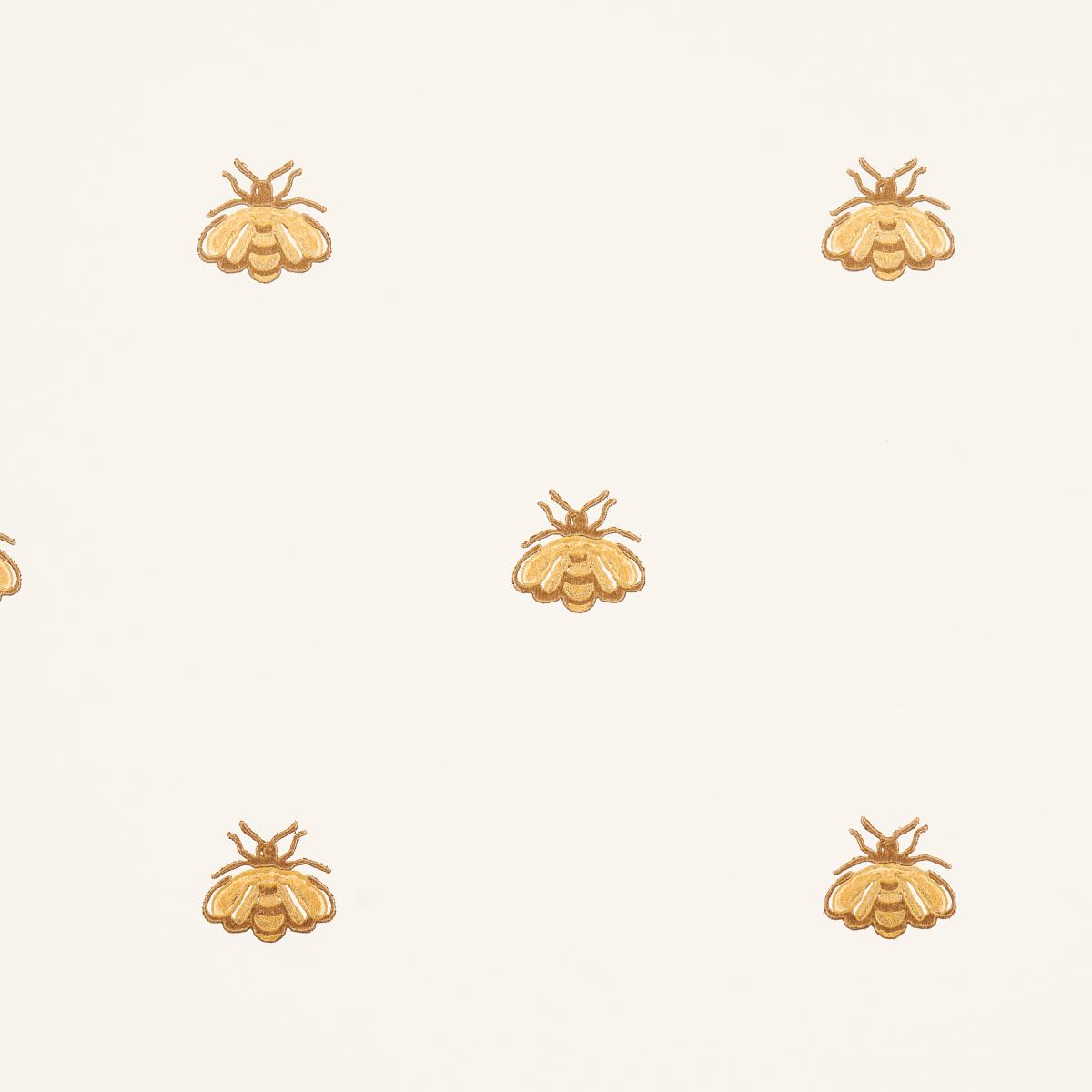 Inspired by a Napoleonic symbol, Hubert’s Bees is a chic and charming wallpaper design that adds a touch of Francophile style to any room. Surface printed with gold metallic ink, this small-scale pattern has marvelous dimension and a soft sheen—perfect for lining bookshelves, a closet or ceiling.