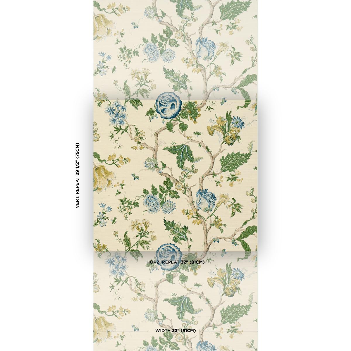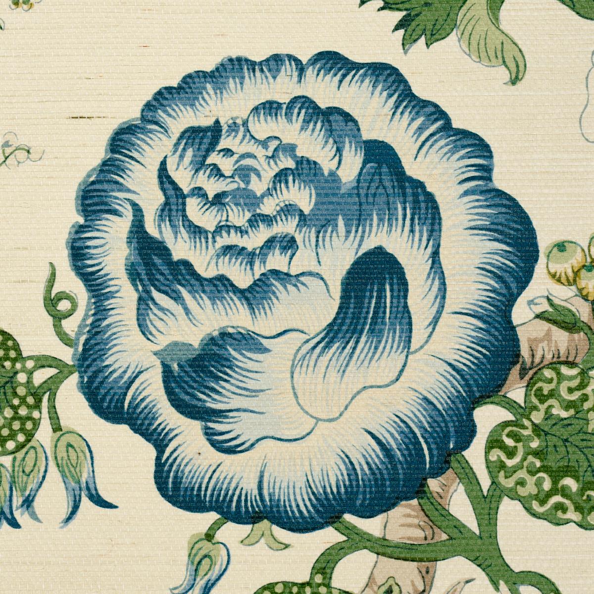 Printed on textured wallpaper, this midscale tree of life pattern authentically reproduces a late 19th-century original. The overlapping areas of color give incredible depth and dimension to the highly stylized flowers.