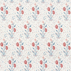 A simple, stylized floral inspired by traditional Indian motifs, this lovely, large-scale pattern has the nuanced look of a hand block print.
