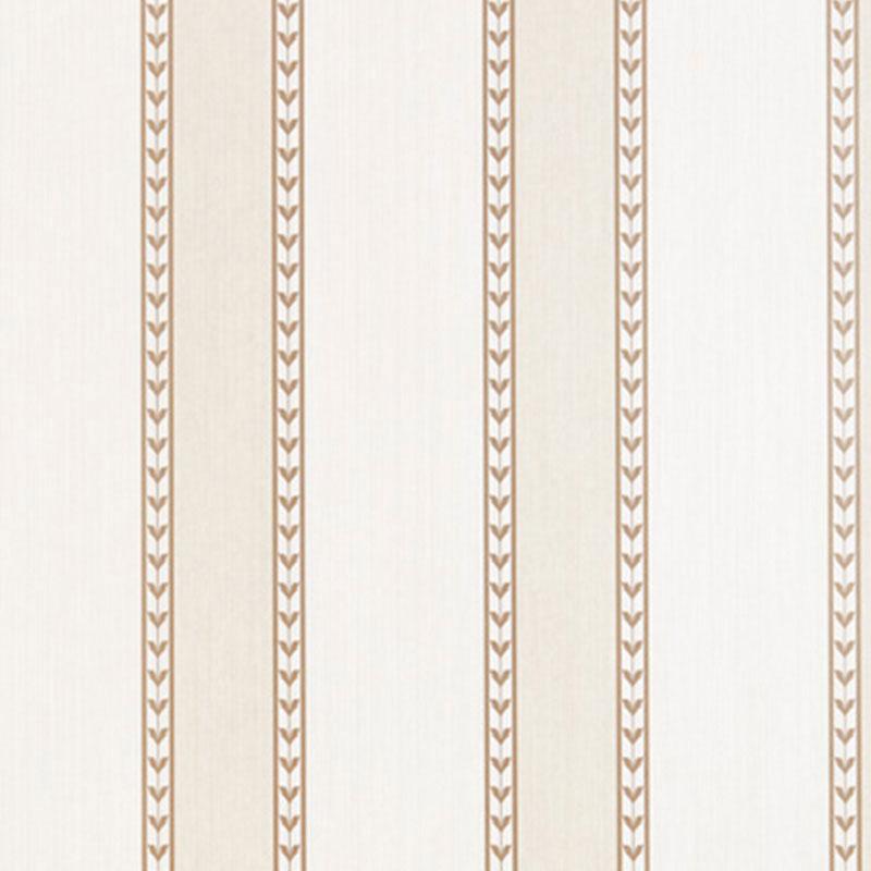 This classic wallpaper design derives from detailing on an English porcelain plate. Decorative edging enlivens a traditional alternating stripe pattern on a textured strié ground.