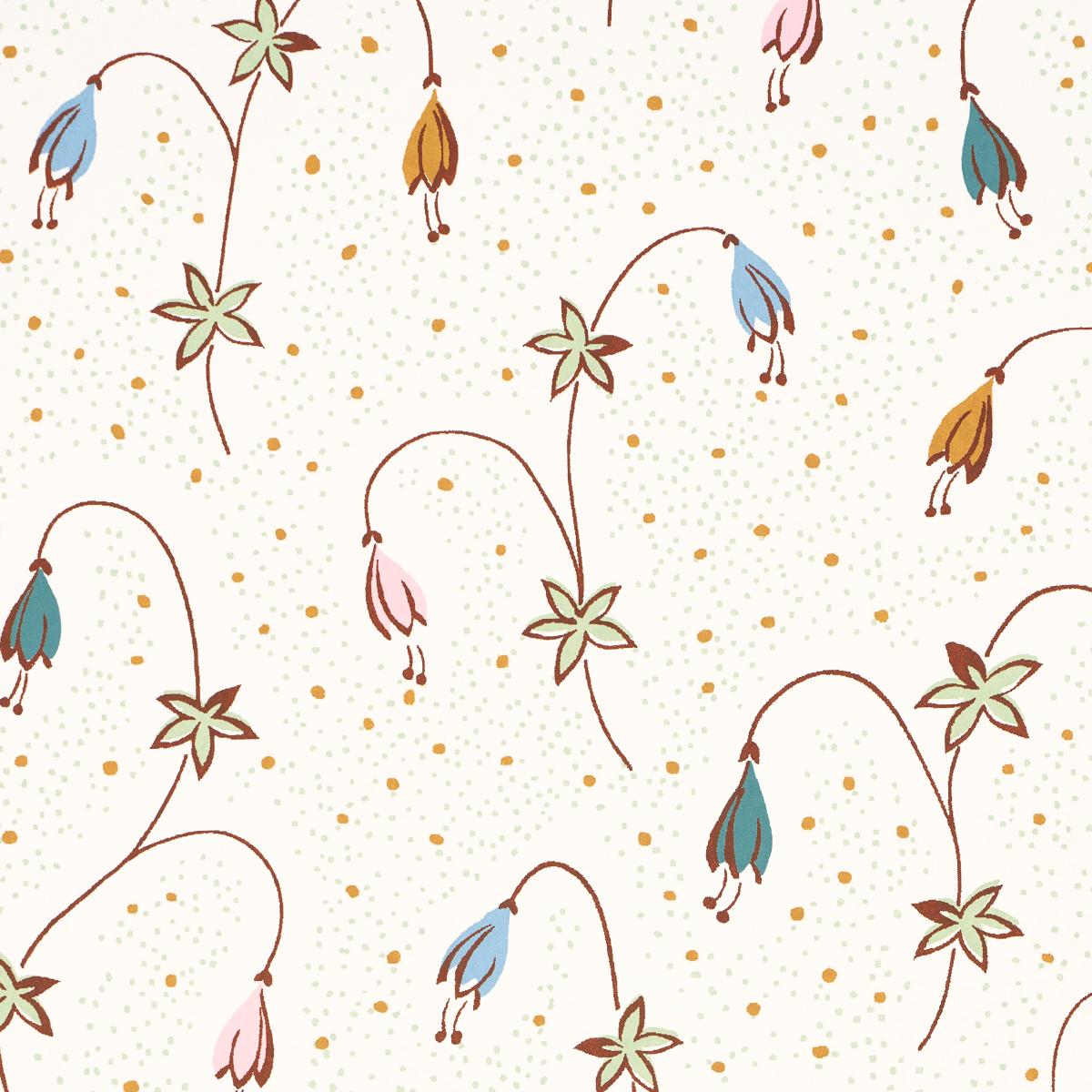 Featuring bowing blossoms and a dotted background, Lolly Floral is a playful small-scale wallpaper with infinite appeal and myriad uses. Delicate and decorative, this lively design layers beautifully and is perfect for bedroom walls, inside a closet or behind bookshelves.