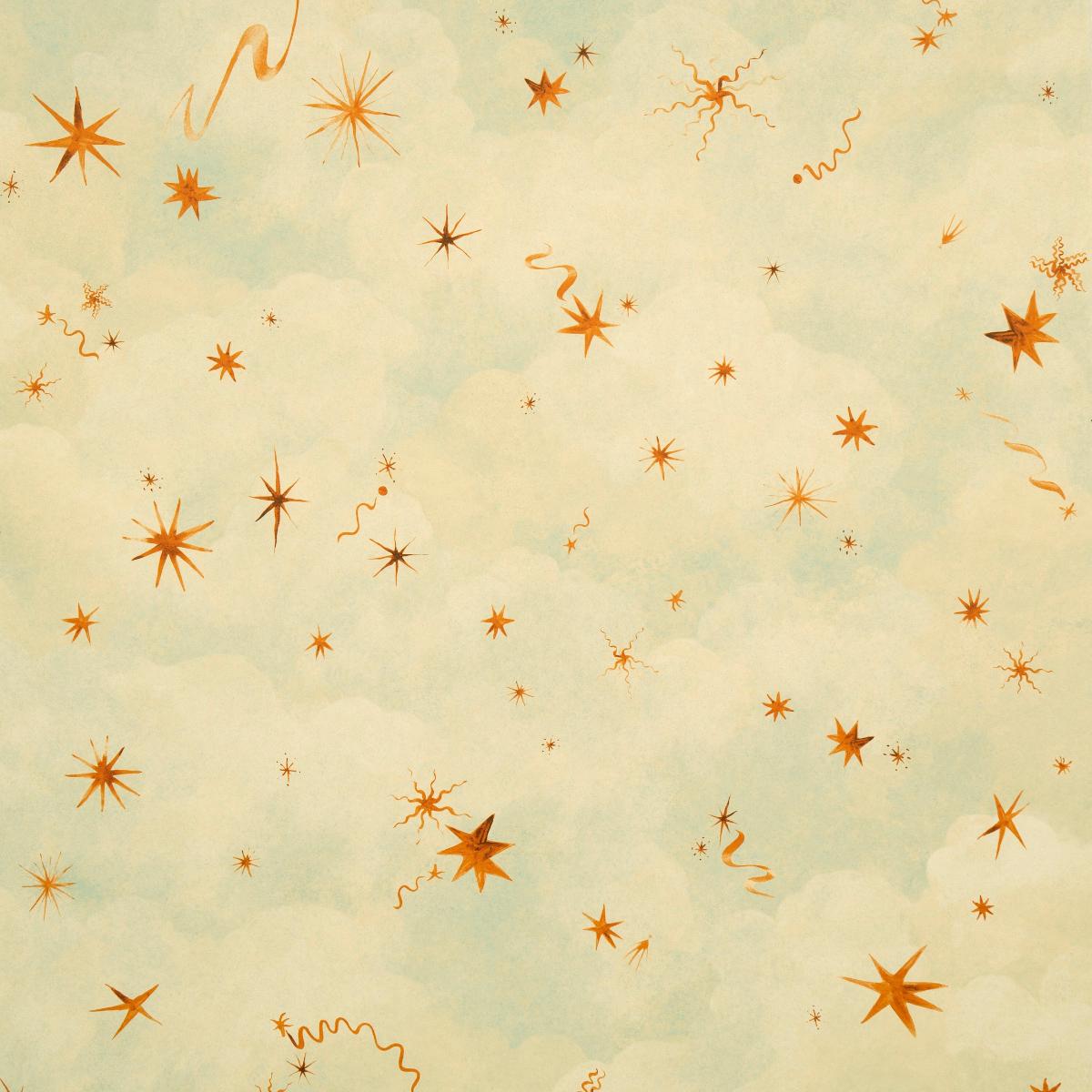 Backdrop collaborated with artist Xavier Donnelly to create Luminaries, a heavenly cloudscape enlivened by whimsical stars and celestial objects. Based on original artwork, this imaginative design has soft tonal variations, a stylized hand, and the textural look of a hand-painted fresco.