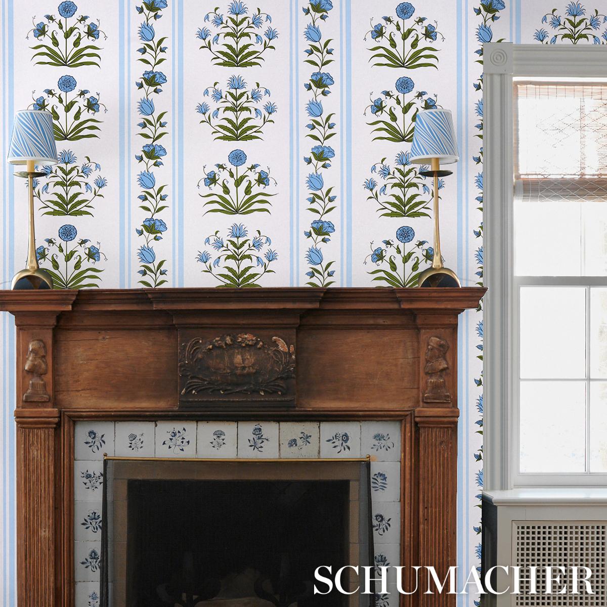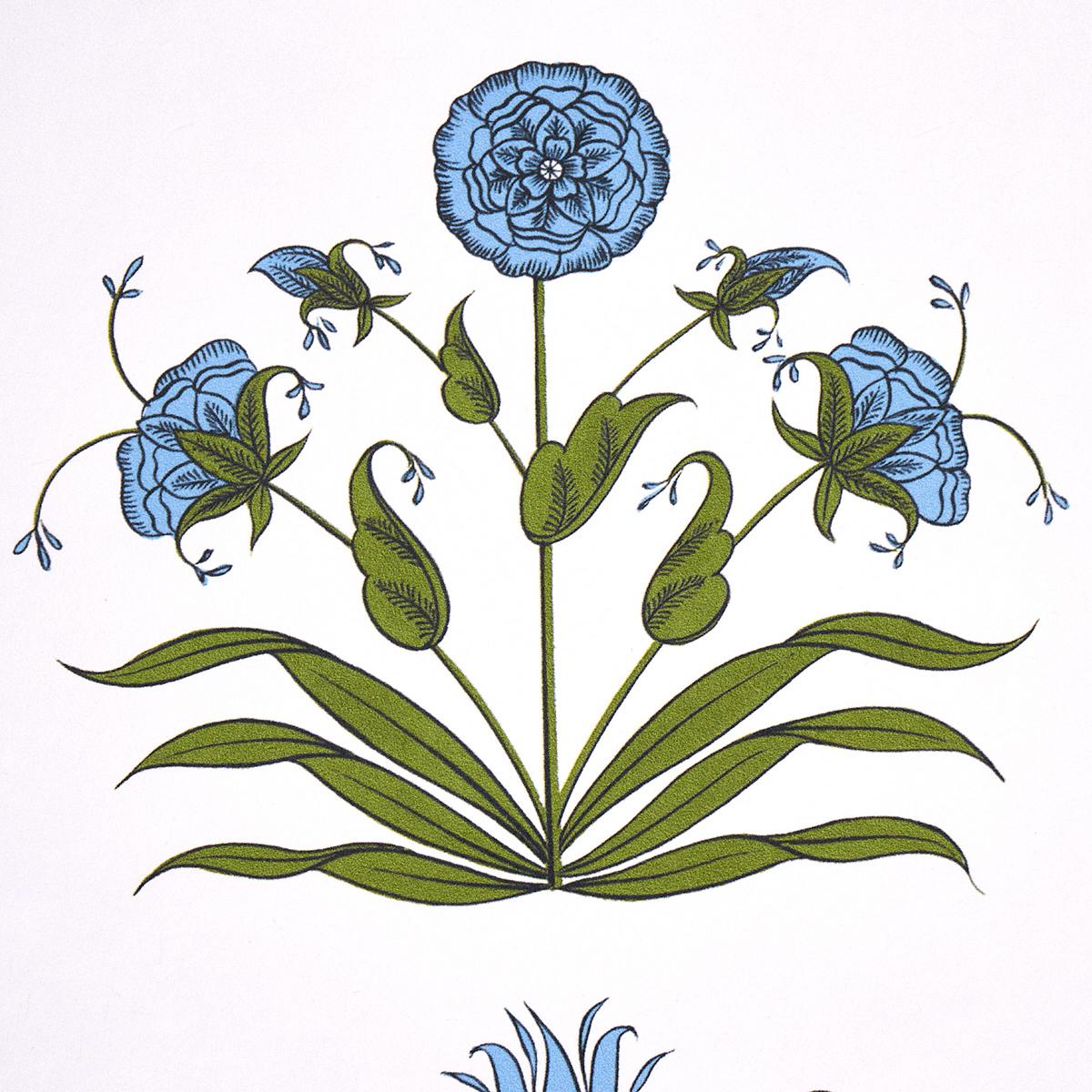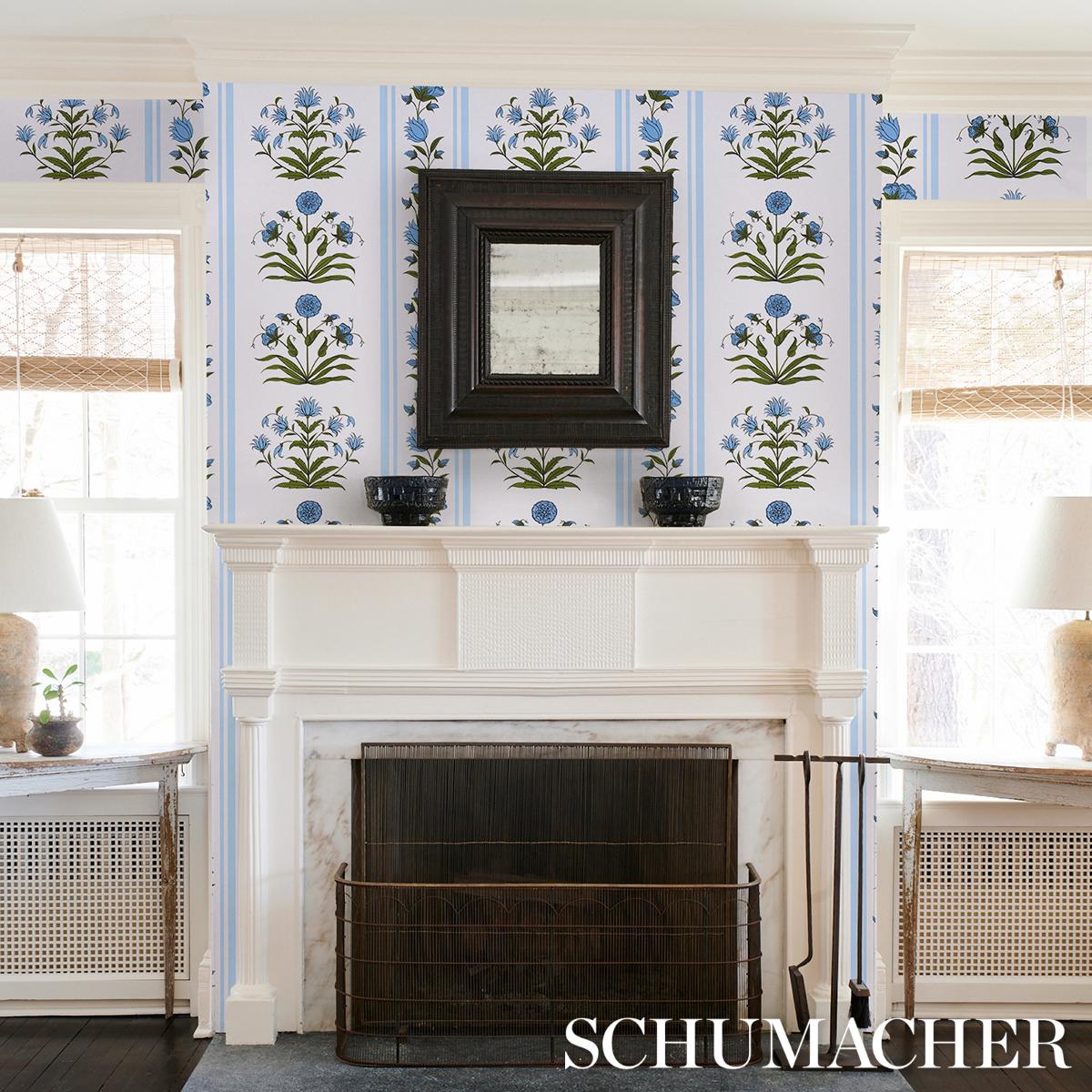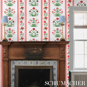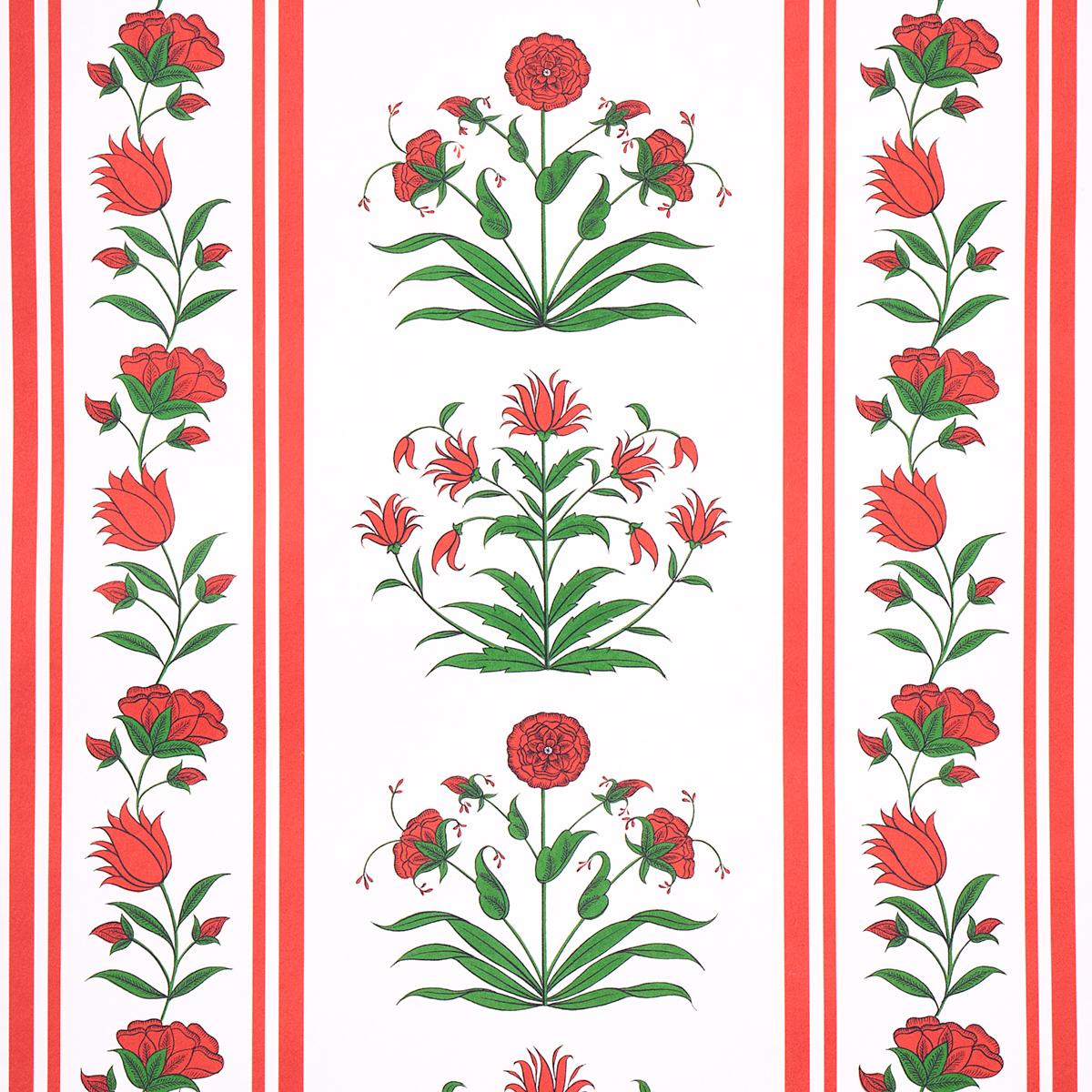 Inspired by Dutch simplicity and traditional Indian flower motifs, Jaipur-based decorative painter Marie-Anne Oudejans created Poppy Stripes, a charming midscale wallpaper design that combines stylized flowers and multi-width stripes. This crisp, versatile floral adds modern and exotic flair to any room.