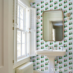Inspired by traditional botanicals and created in collaboration with fashion designer Johnson Hartig, Strawberry Hill in white is a versatile wallpaper that looks equally fabulous in formal and informal rooms. This cheerful mid-scale design, with its simple offset grid of strawberry blooms, plays beautifully with other patterns.