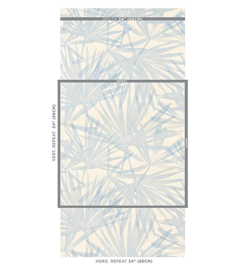 Based on an original watercolor and printed in Brooklyn, this evocative design recreates the effect of sunlight filtered through waving palms—a dreamy, dappled wallcovering that will completely sweep you away.