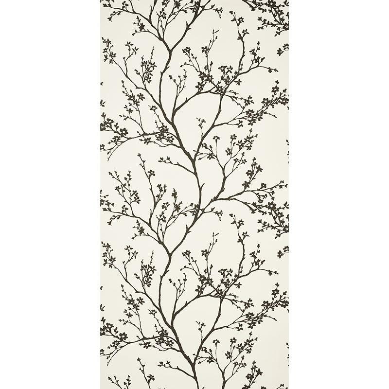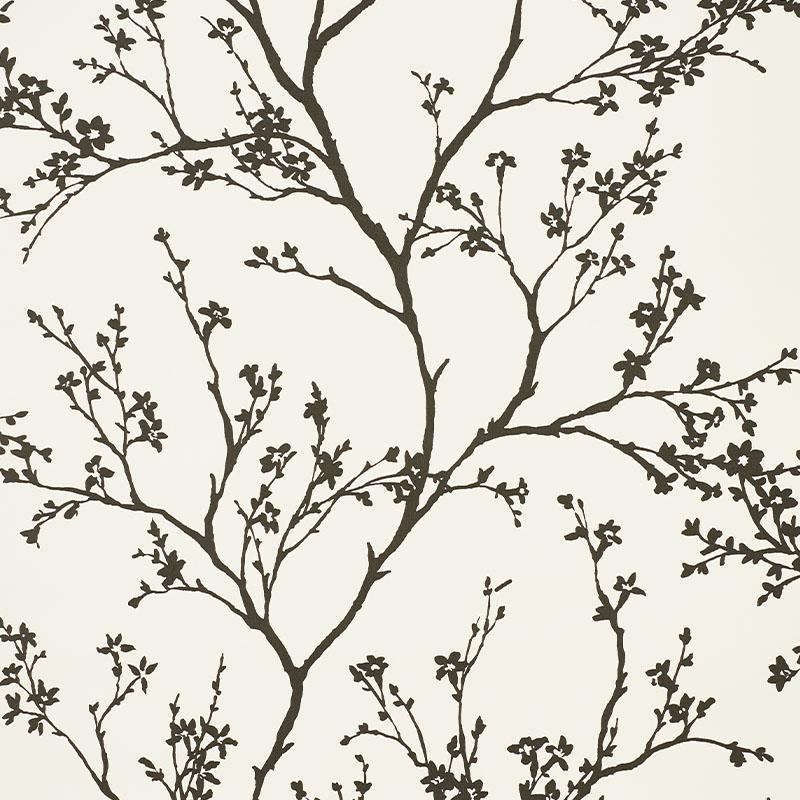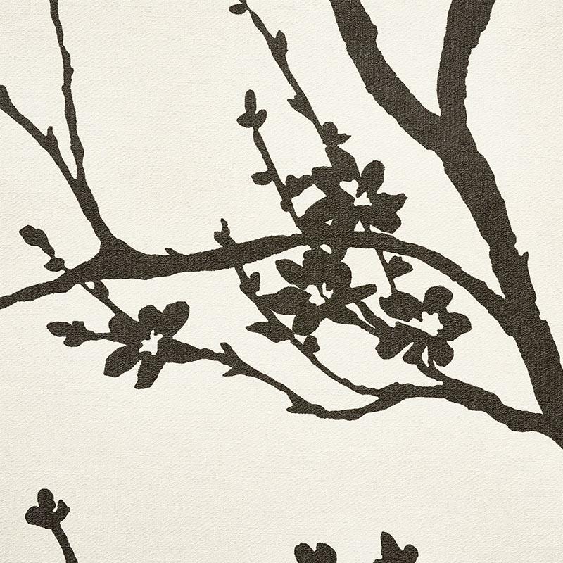 Twiggy is a delicate yet graphic design that brings the outdoors in, with beautiful flowering branches silhouetted against a linen-like, textured vinyl ground.