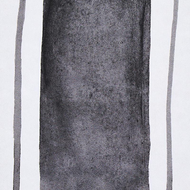 Vertical stripes that were originally hand-painted make a bold and graphic statement that’s softened just enough by the echo of delicate tracing.