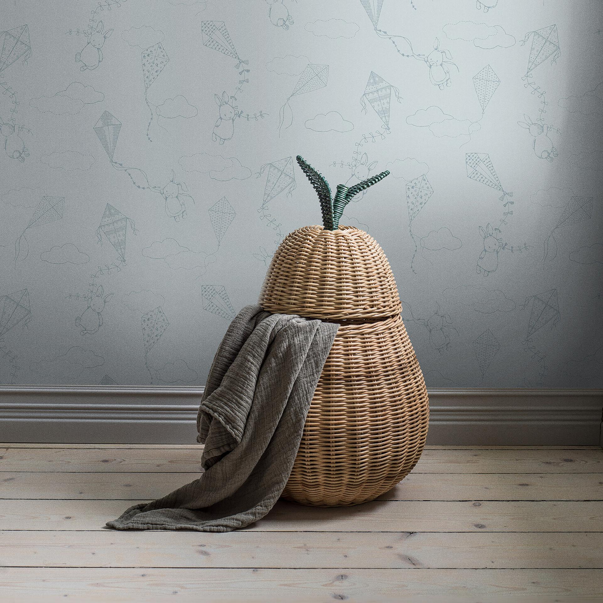 Itty-bitty bunnies take flight with their fists holding tight to a kite string in this adorably illustrated wallcovering. Up & Away is a whimsical collaboration between Swedish heritage design legend Boråstapeter and lifestyle brand Newbie.
