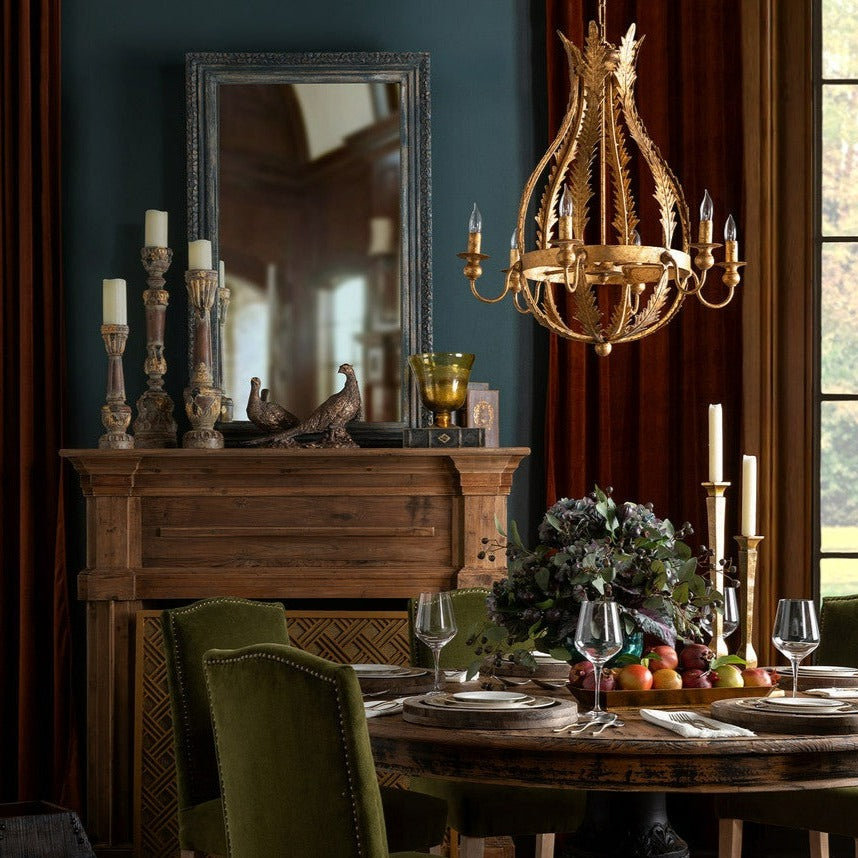 Our St. Augustine Chandelier fashioned in a traditional Spanish Revival silhouette and adorned by delicate filigree details, this gold fixture is sure to elevate the lighting in any space.