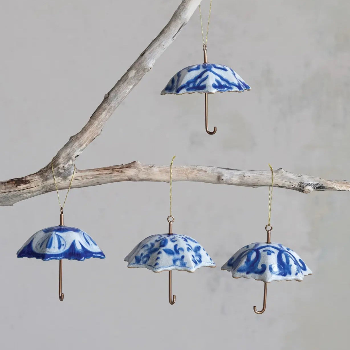 These blue and white umbrella ornaments are such a charming twist on holiday decor, with their delicate blue and white patterns and cottage inspired feel, they add a playful yet elegant touch to any tree.
