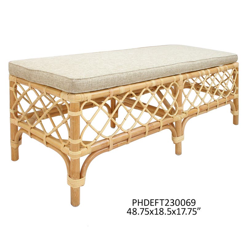 Add a touch of laid-back cottage charm to any space with our Terrace Rattan Bench, the intricate, trellis-inspired pattern evokes the serene ambiance of a classical garden, while the durable woven rattan craftsmanship ensures both style and functionality.