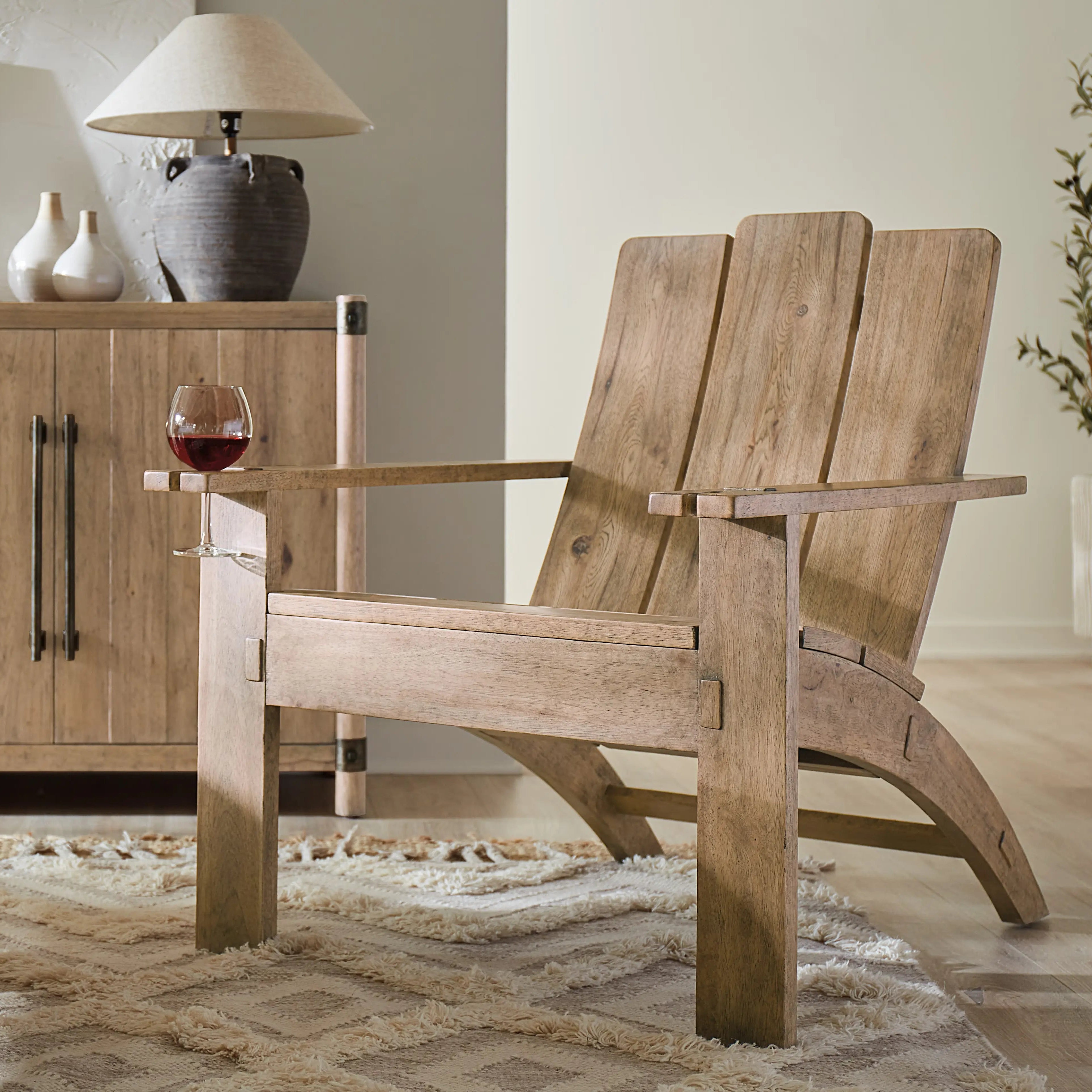 Inspired by the organic beauty of California wine country, the Vineyard Row Accent Chair embraces the rustic charm and organic aesthetic of Sonoma and Napa Valley. Crafted with Pecky Hickory veneers with a natural Sonoma wood finish and nail head detailing, this Adirondack style accent chair is sure to provide a light and airy vibe to any space.