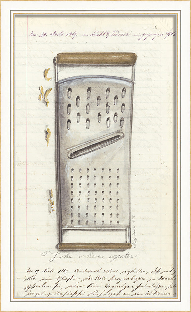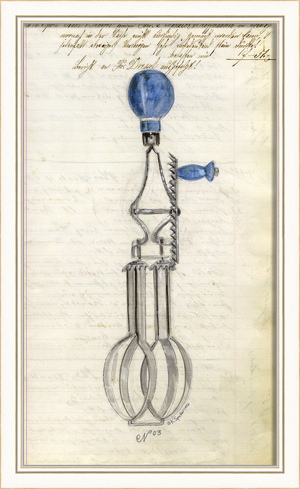 Add a sophisticated vintage feel to your kitchen or dining room with our Vintage Kitchen Tool Framed Art Prints, featuring six different hand drawn vintage style kitchen tools set against the backdrop of handwritten notes, these prints are sure to add a touch of elegance and whimsy to any dining space.