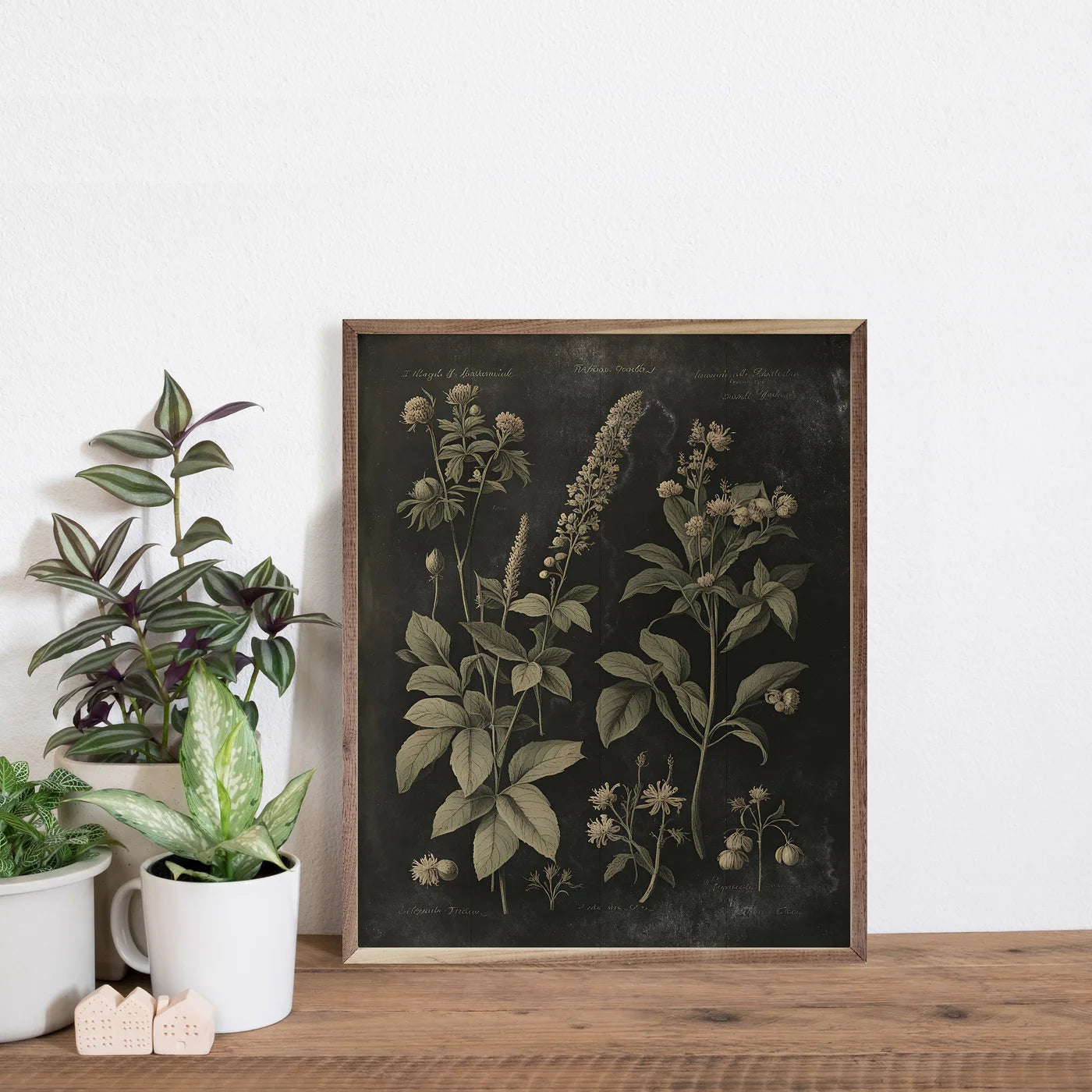 This vintage style wood print, featuring a walnut wood frame with beautiful neutral floral stems printed on a black distressed shiplap background, is sure to provide beauty and farmhouse charm to any space.