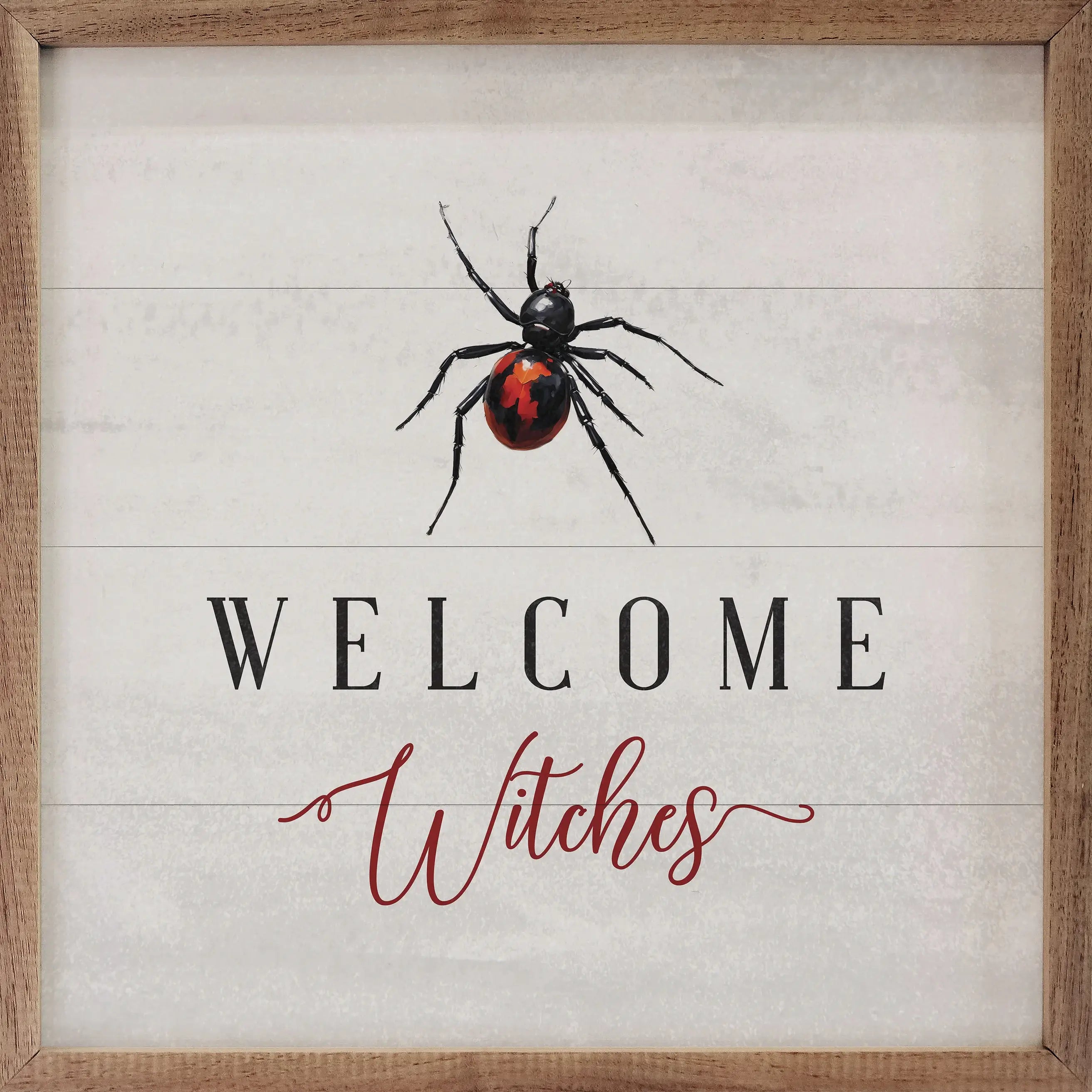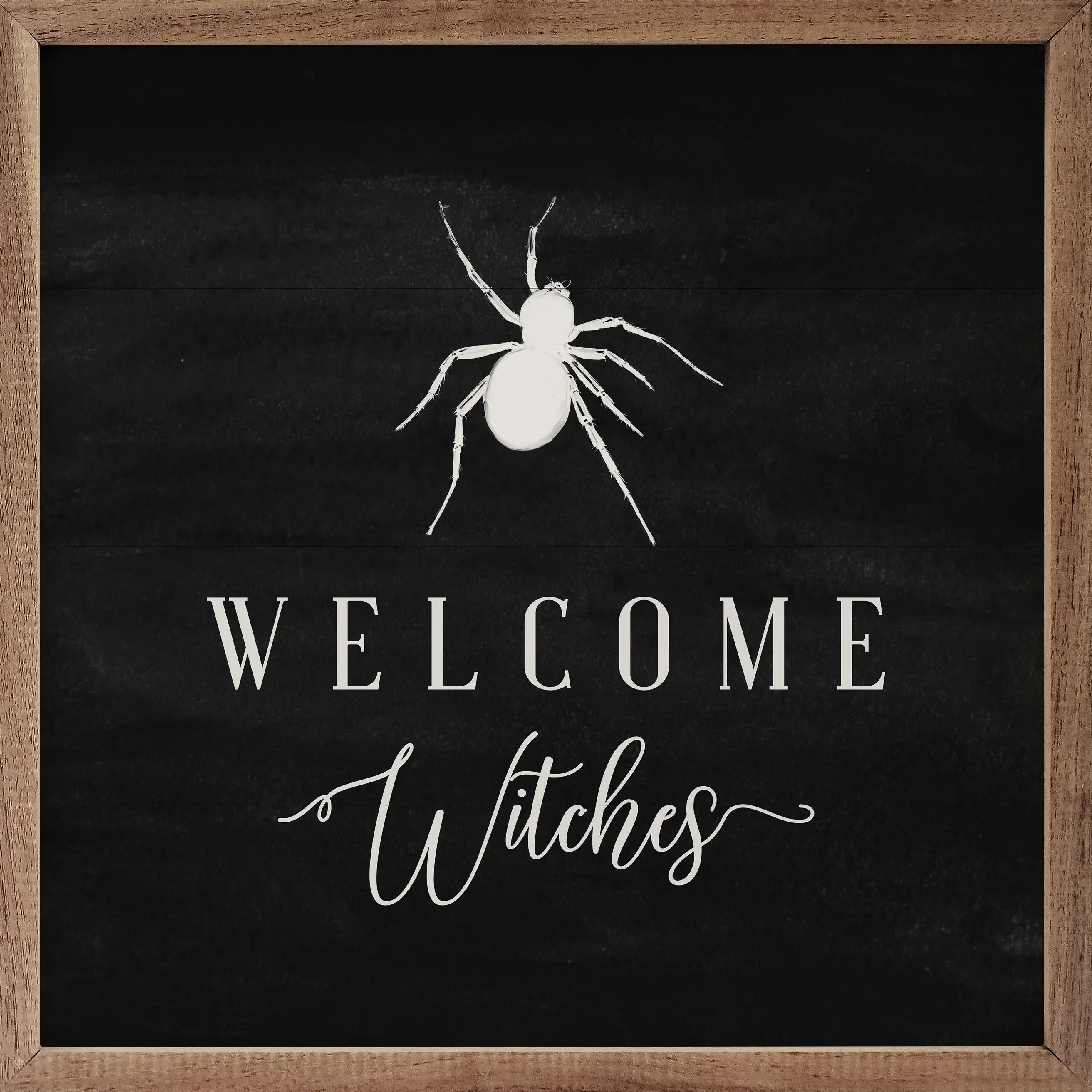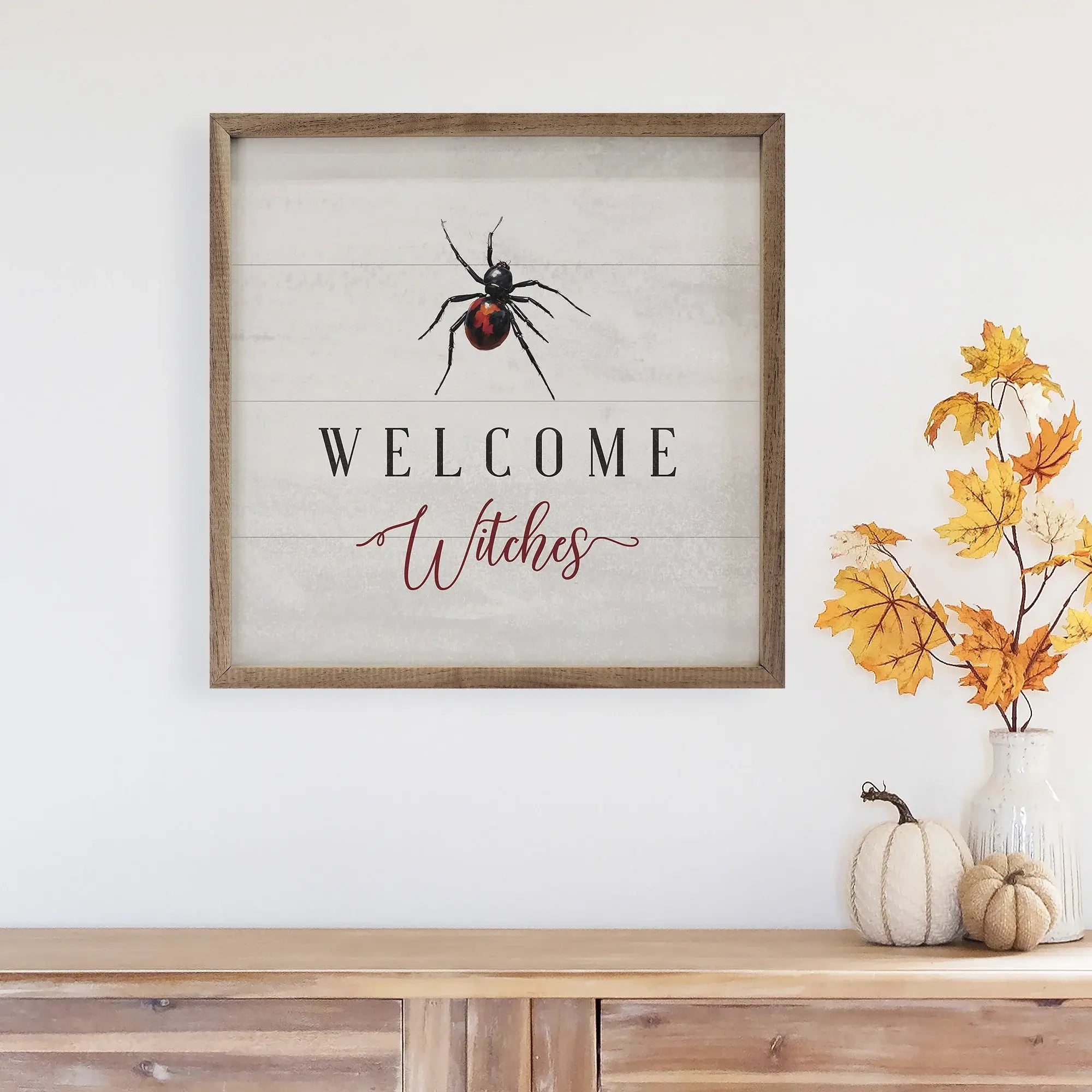 Welcome your spooky guests cottage style with this charming “Welcome Witches” print, complete with a creepy cute spider accent and set against a shiplap background framed in warm walnut wood, it adds just the right touch of Halloween whimsy. Available in classic black or white to suit your fall decor.