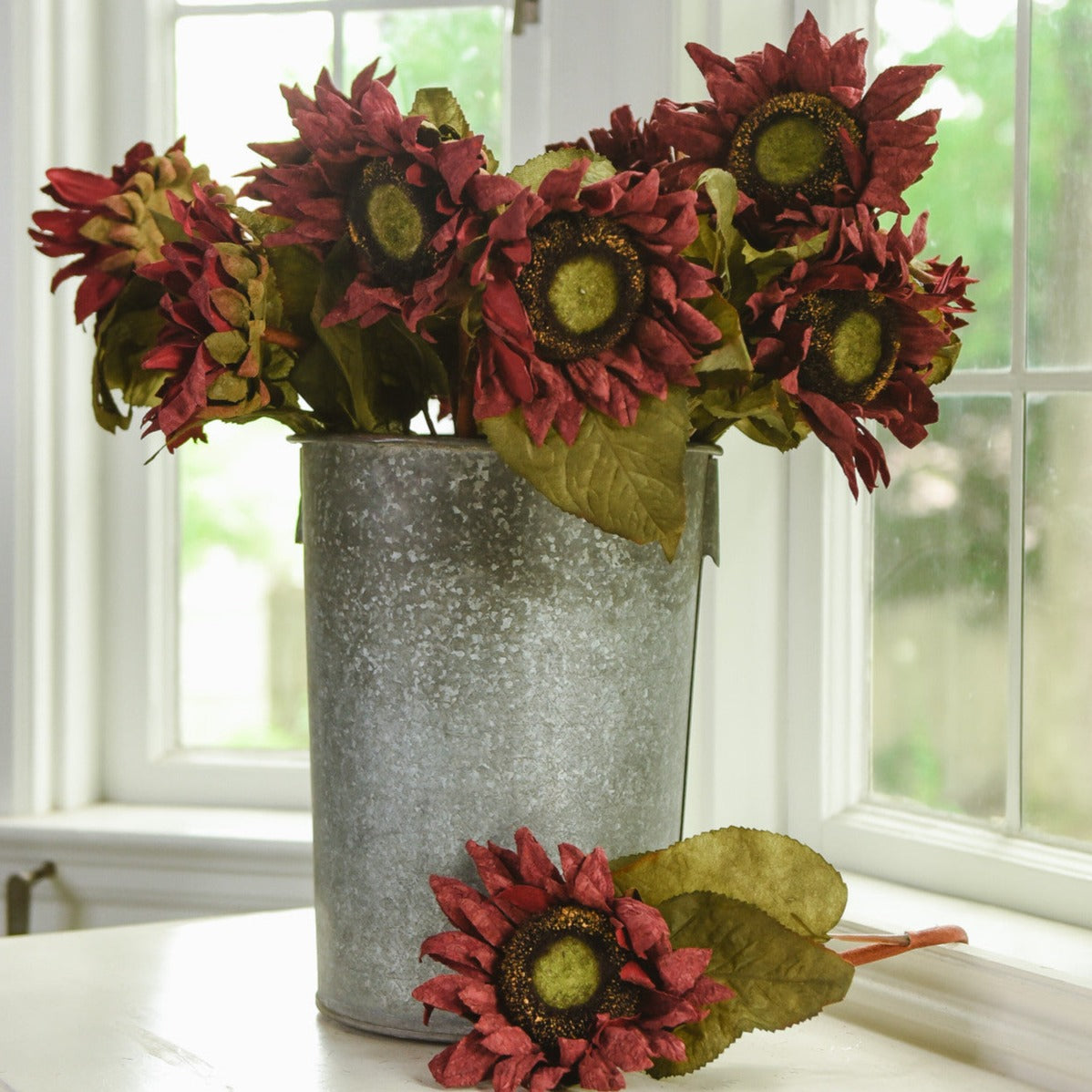 These gorgeous sunflower stems, featuring a beautiful wine red color, are perfect for adding foliage with a Fall touch to your farmhouse this season.